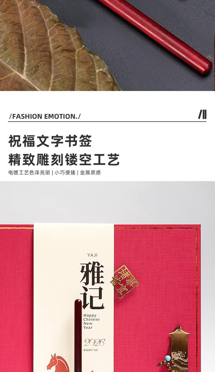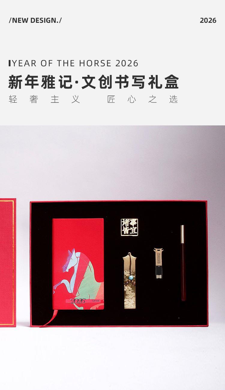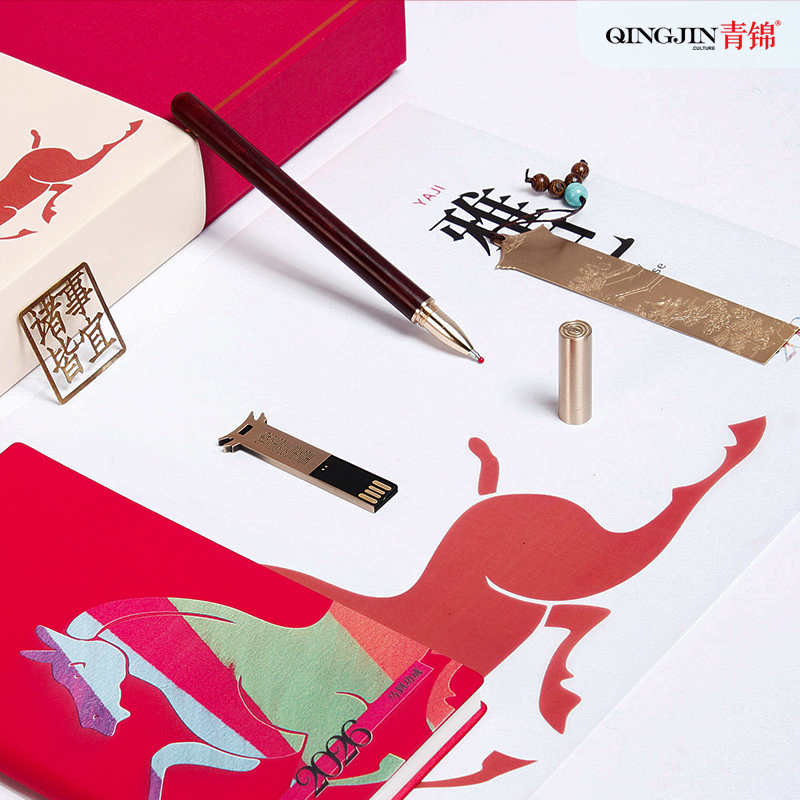 青锦2026【雅记】彩印笔记本签字笔书签优盘诸事皆宜礼盒