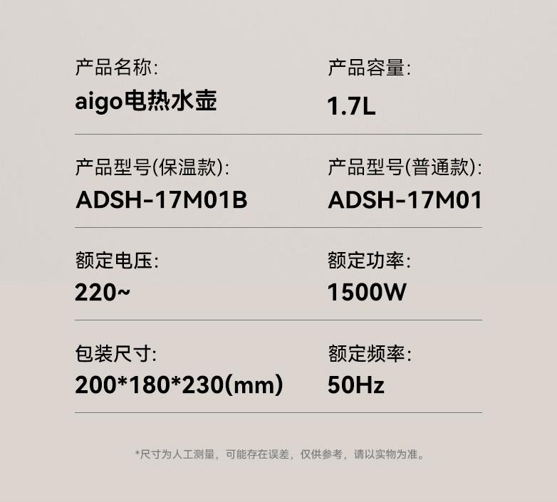 aigo爱国者电热水壶ADSH-17M01B