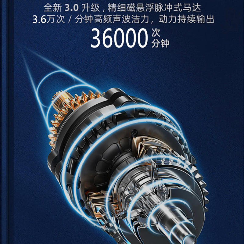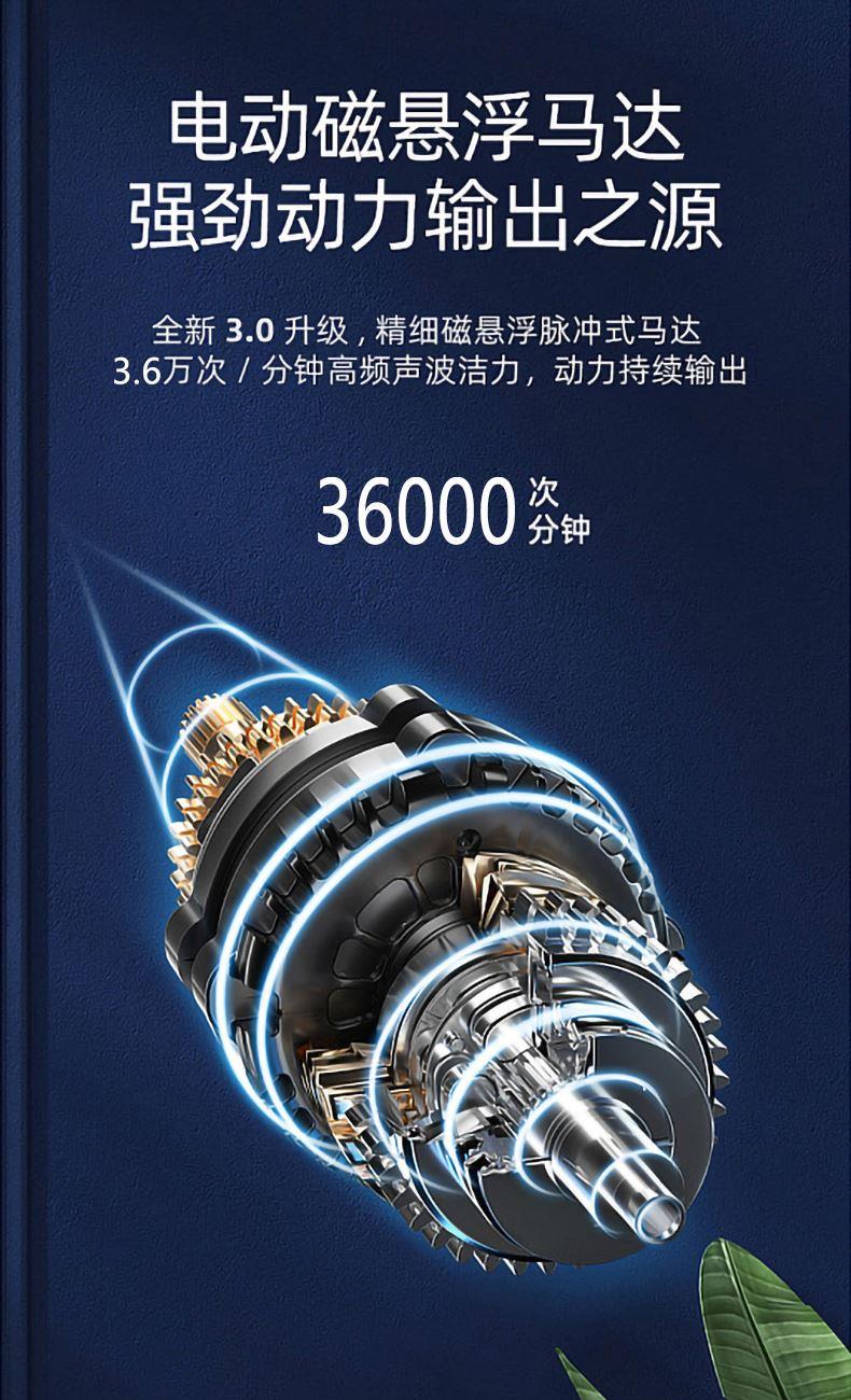 产品尺寸:28×31×255mm 彩盒尺寸:205×64×278mm 颜色:蓝色 磁悬浮技术(升级版磁悬浮马达) 5档模式配合3速调节 Type-C充电接口, 4小时充电,放电时间≥60天 IPX7级全身水洗 30秒换区提醒 2分钟定时关机 杜邦高密度刷毛 2秒柔和起动