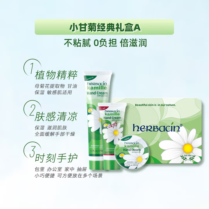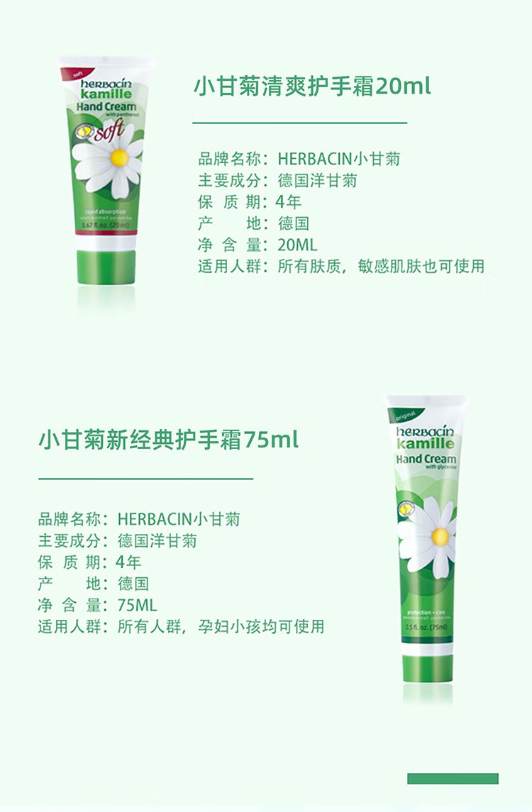 原产地:德国 规格:清爽护手霜75ml、新经典护手霜20ml、清爽护手霜20ml 功效:滋润手足、抚平粗糙、轻盈舒缓、补水防护、打造细化水嫩肌肤 保质期:4年 适合肤质:所有肌肤 礼盒尺寸: 19*13.5*4cm 条形码: 4013718083063
