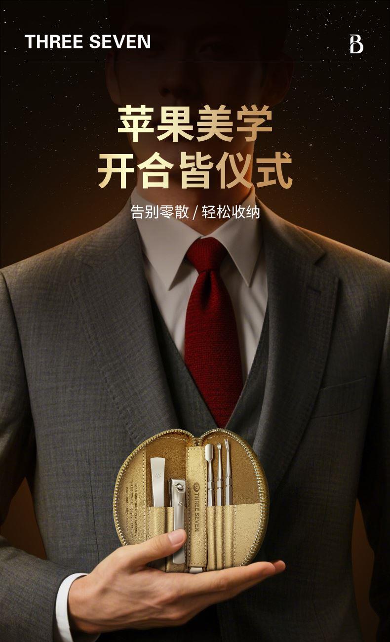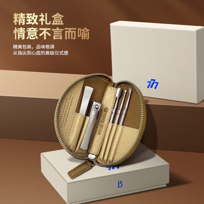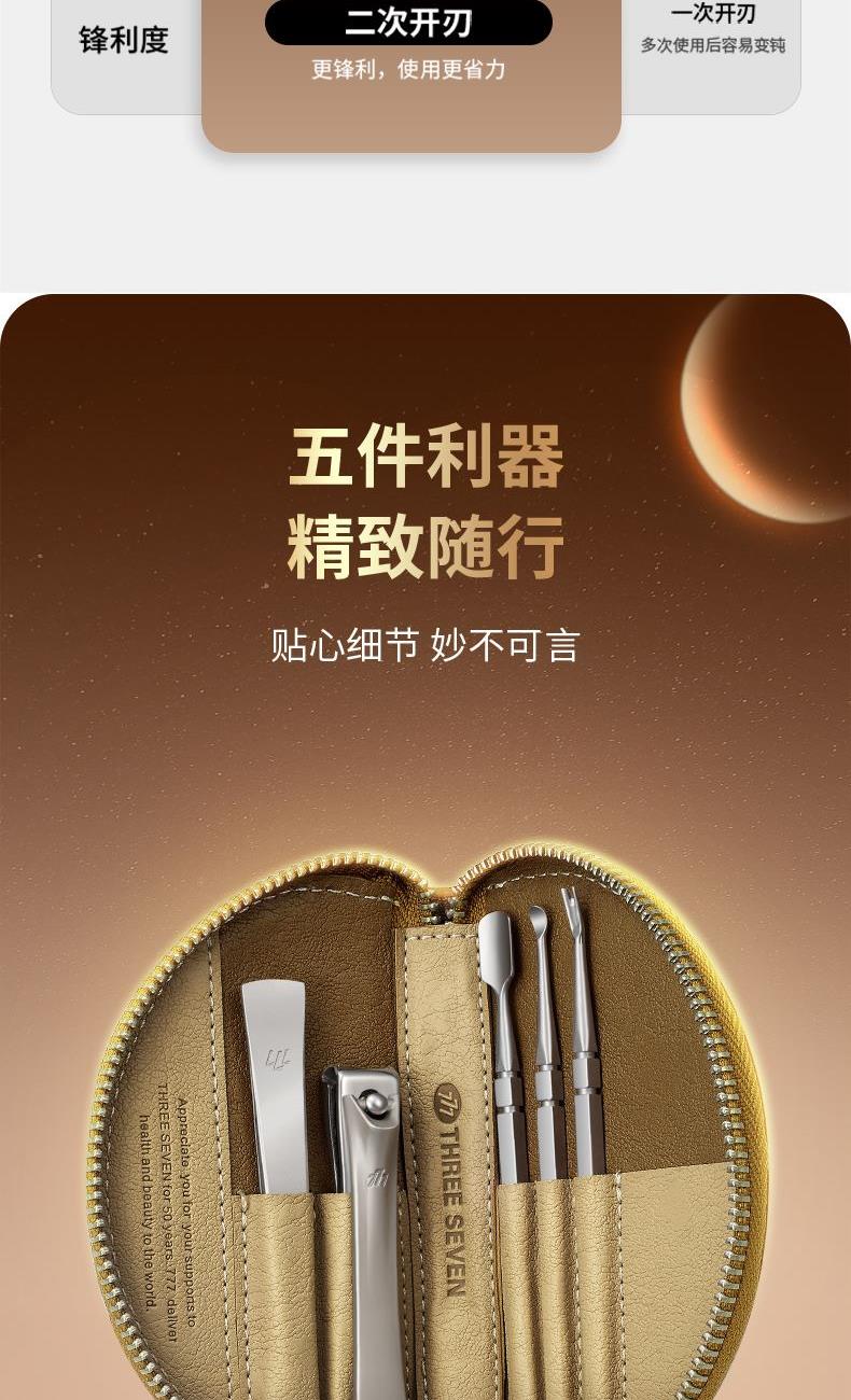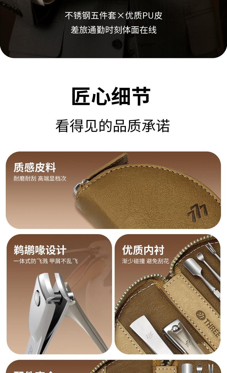 777指甲刀牛角套装不锈钢指甲剪5件套ST052棕 礼品已成功加入PPT!