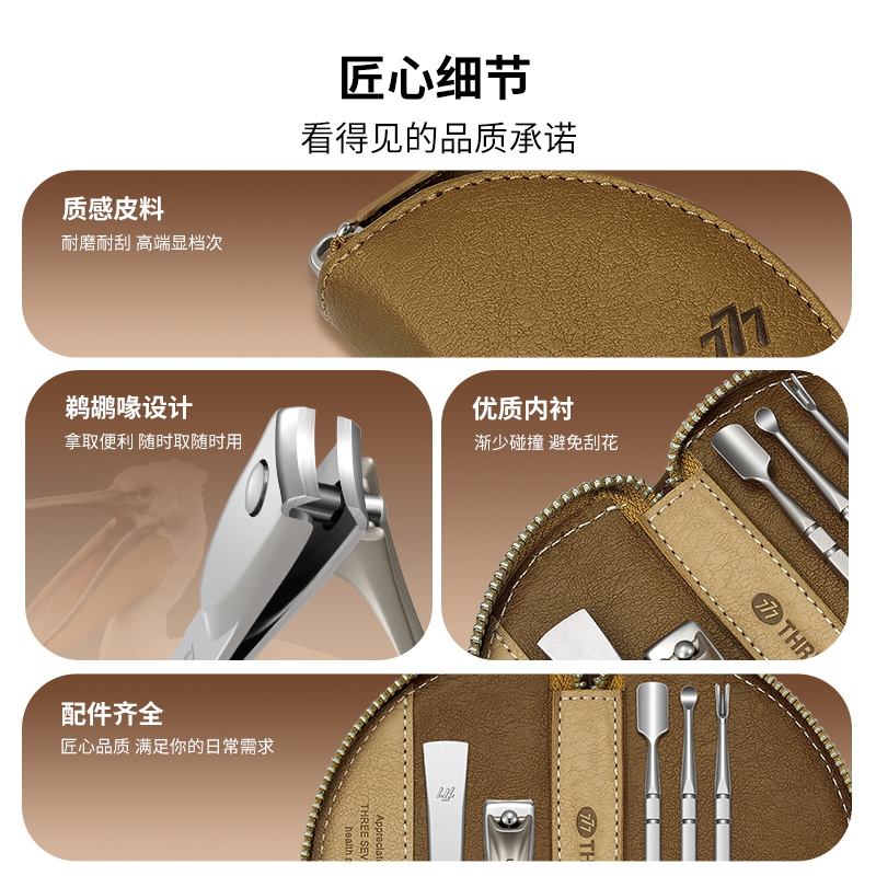 777指甲刀牛角套装不锈钢指甲剪5件套ST052棕