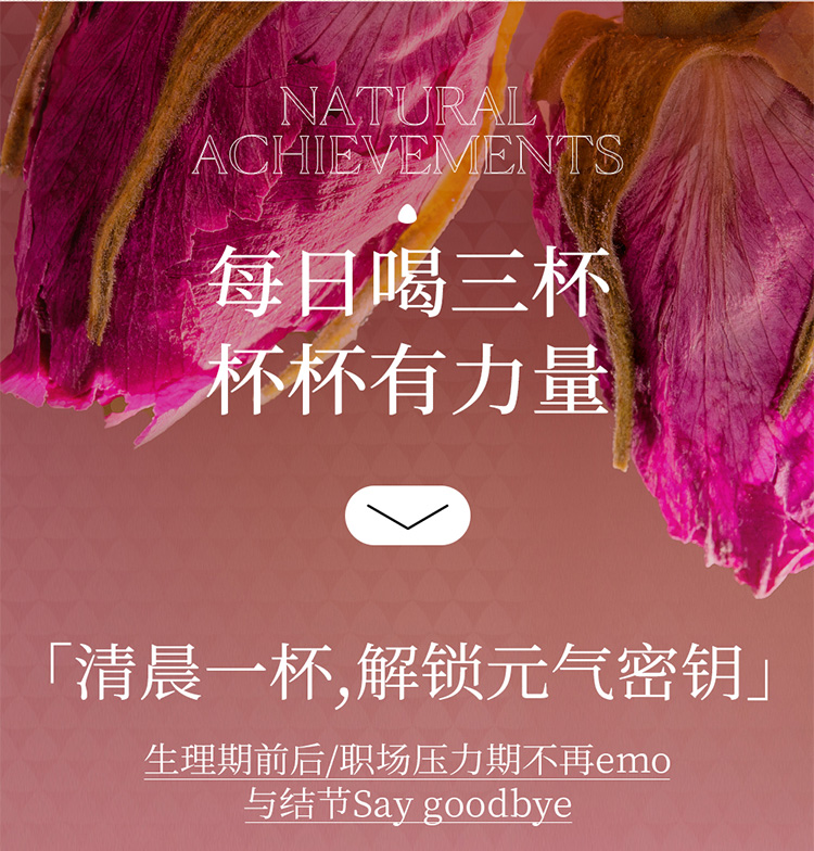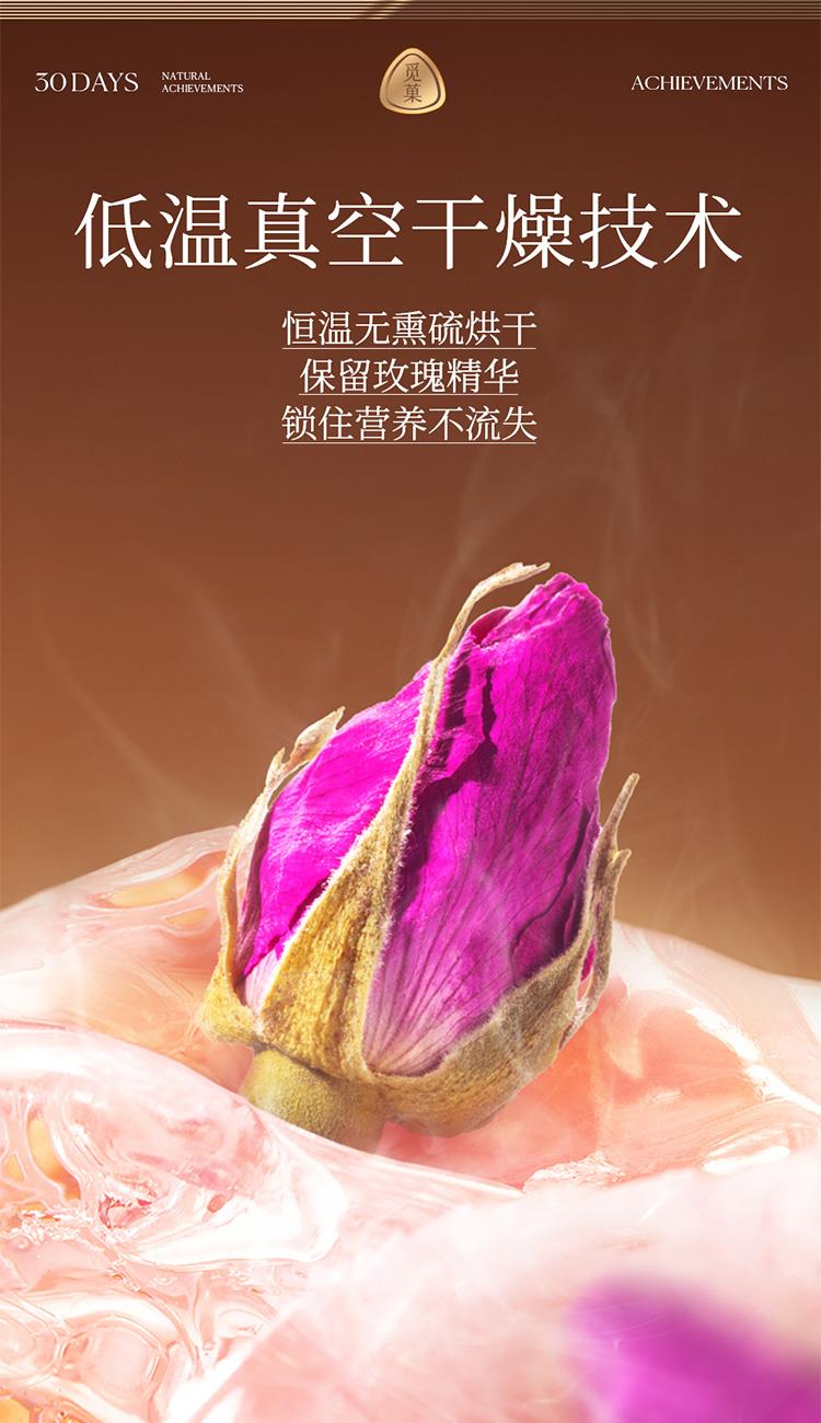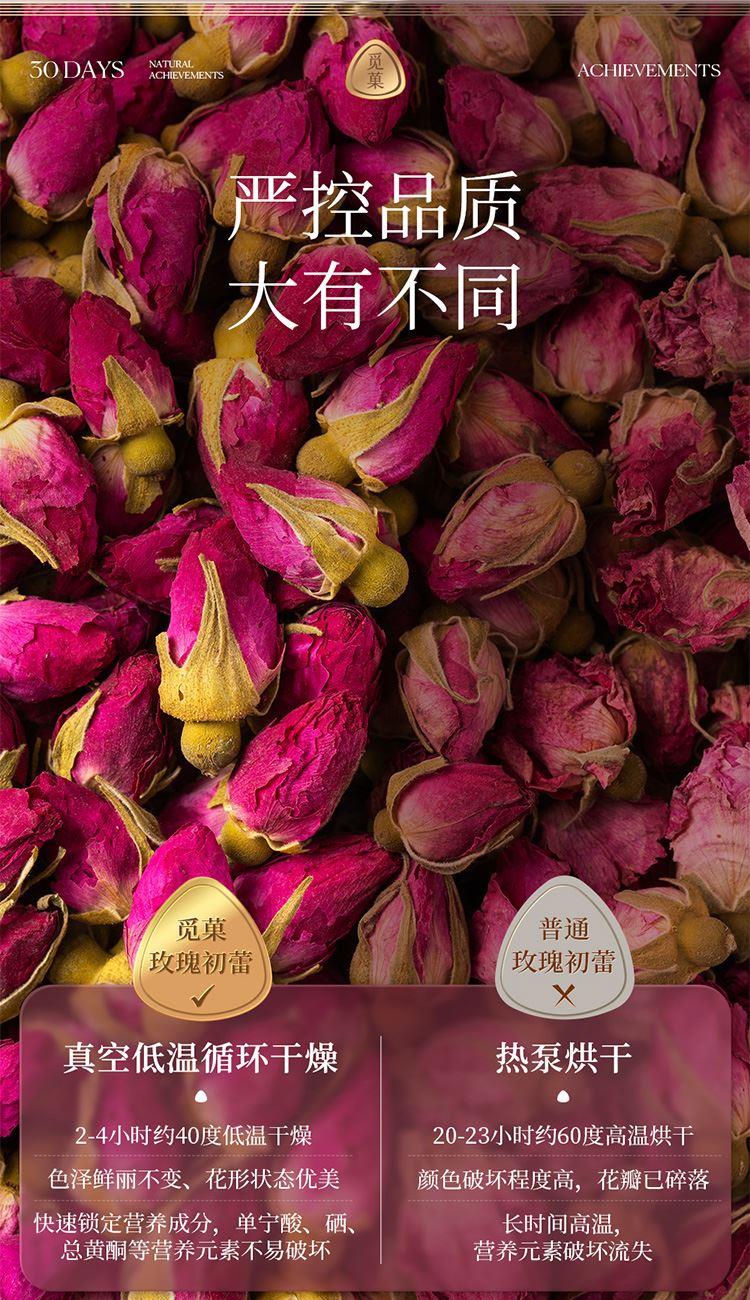 品质玫瑰 黄河冲积沙壤土 玉带河深层岩隙水灌溉 气候水源成就品质玫瑰 药食同源 平阴玫瑰 性温味甘 ,归肝脾经, 疏肝解郁、食养两宜 干燥技术 低温真空干燥技术 恒温无熏硫烘干 保留玫瑰精华 锁住营养不流失