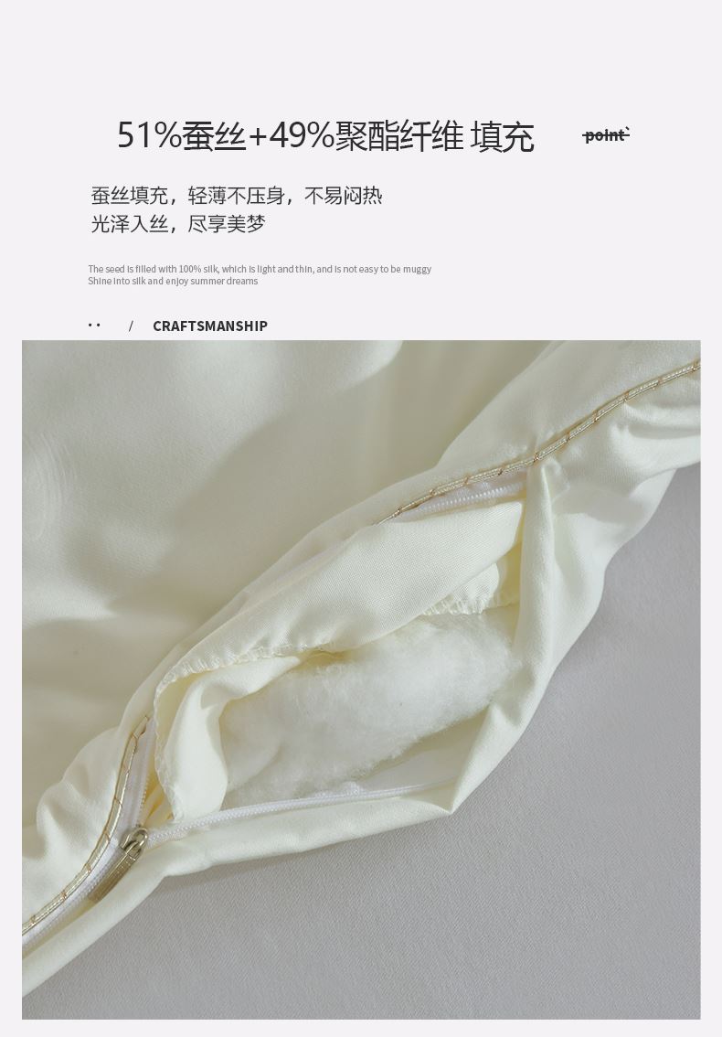 规格:200*230cm 面料: 华夫格 填充: 51%蚕丝+49%羽丝棉 重量:2000克 执行标准:GB/T22796-2021 安全类别:GB18401-2010 B类 1.蚕丝的多孔隙结构,自带呼吸感,能够使被芯内温度保持舒适,更适合东方人的睡眠环境。同时青桑有机蚕丝做成的被芯更蓬松,既保暖又不重这种平衡感,可以让人更好入睡,睡得更舒服。