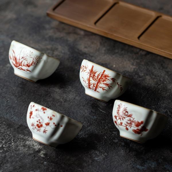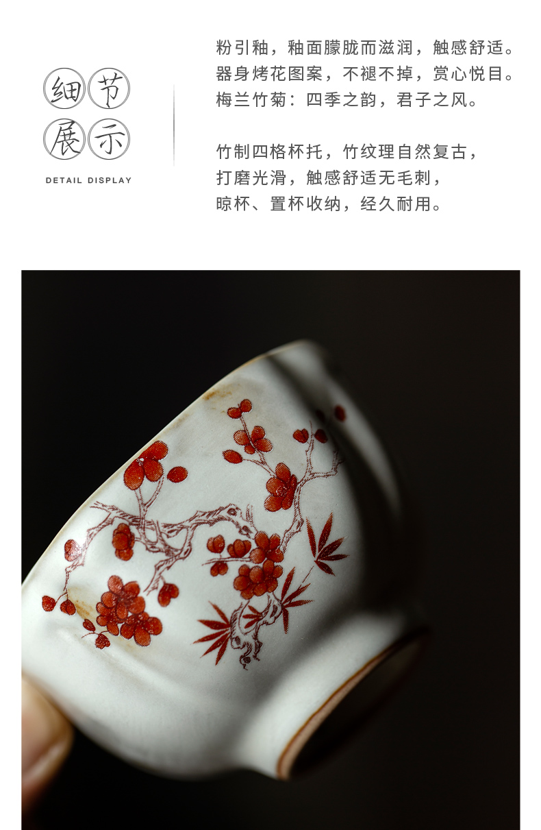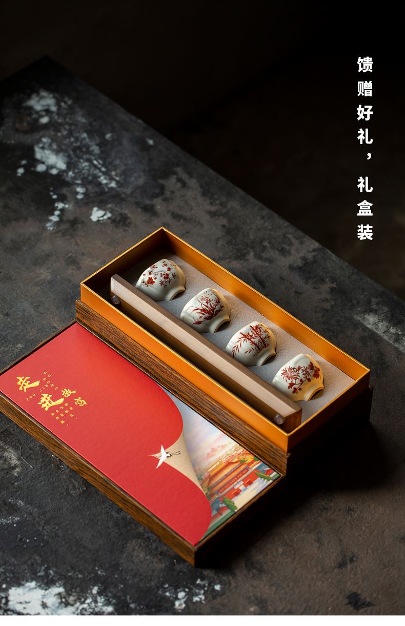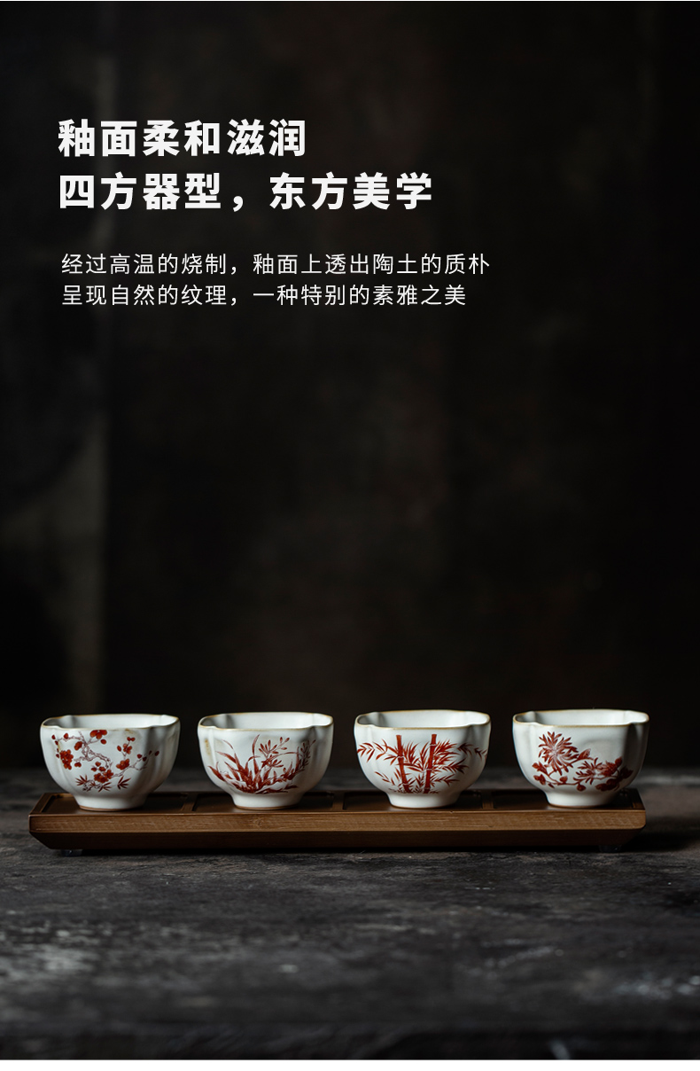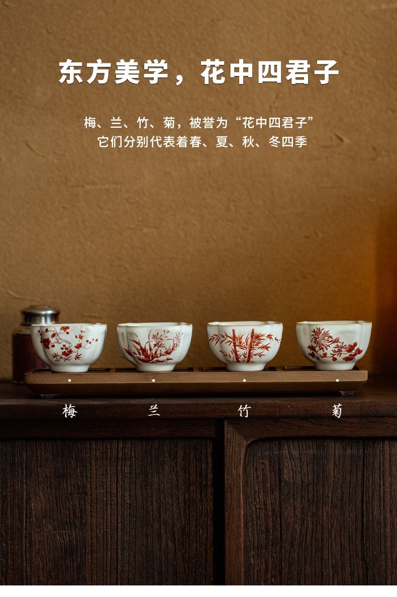 尾桥下窑粉引四君子梅兰竹菊主人杯陶瓷品茗杯开业伴手礼年会礼品