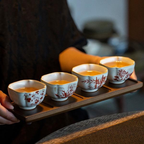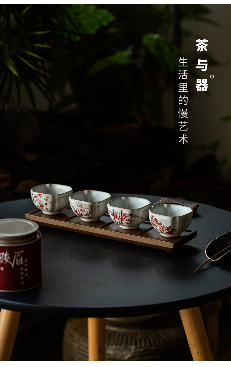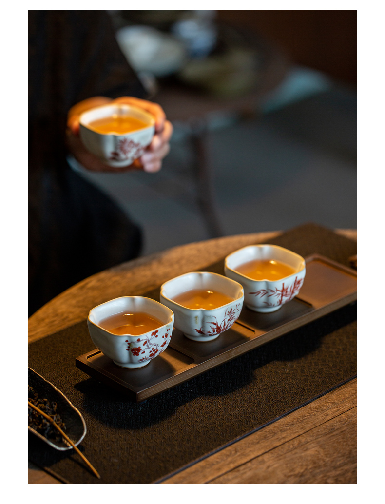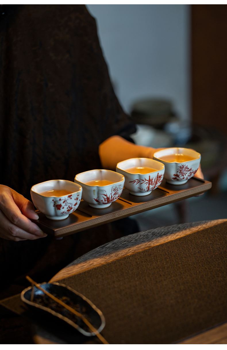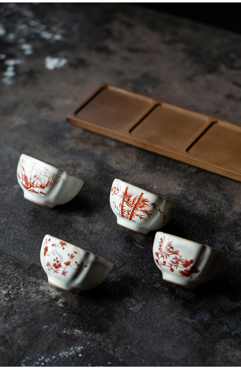 尾桥下窑粉引四君子梅兰竹菊主人杯陶瓷品茗杯开业伴手礼年会礼品