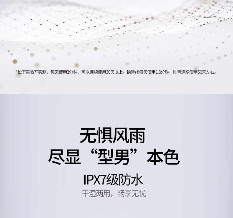 颜色:白色 尺寸: 长110mm;宽77mm;高210mm 续航时间:50分钟 净重:440g 三刀头搭载SkinCare顺滑双滚轮, 不易拉扯,更顺滑 AI智能胡须感应,智控调速,有效降低肌肤负担 新研超高速磁悬浮马达,每分钟转速高达78000次 3D弹性浮动刀头,凹凸有致,全面贴合