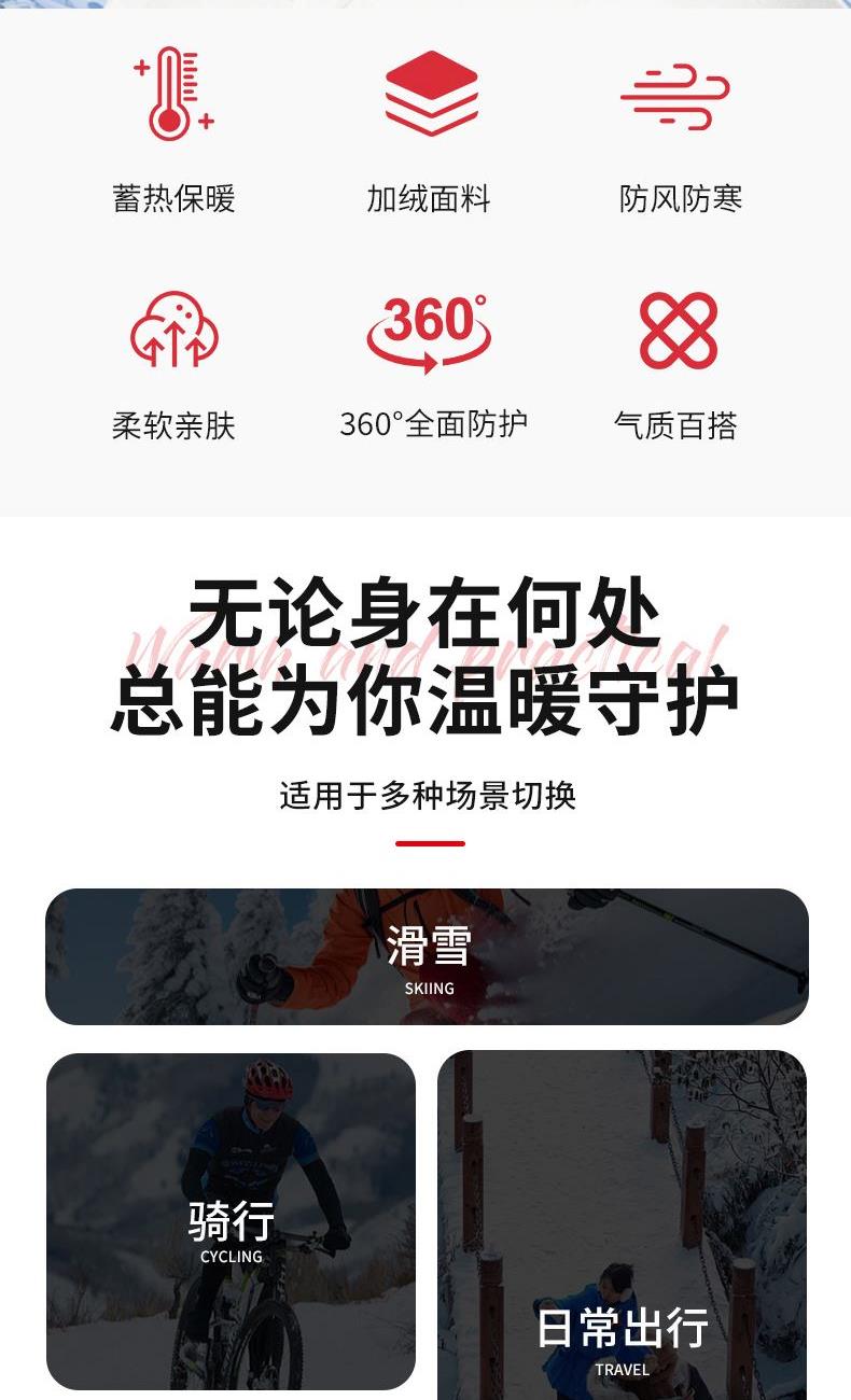 趣游帮滑雪骑行防风加厚奥粒绒保暖围脖(S-3312)