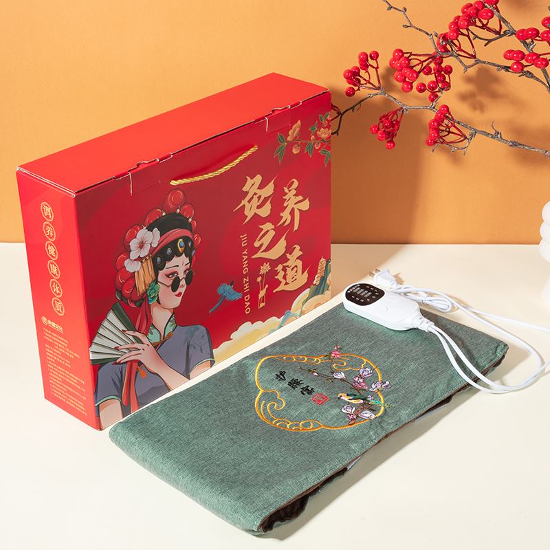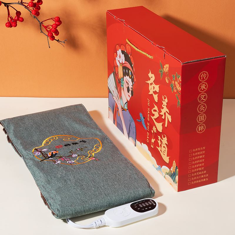 礼盒规格:395*290*80mm 产品配置:电加热护腰宝*1个(含布套、加热芯、艾绒垫、开关) 精美礼盒*1个 产品规格:120*220mm 推荐理由: 1、随着生活、工作节奏的加快,腰困、腰酸、腰痛、腰肌劳损,已经不再是老人的专属,年轻的我们也备受煎熬。 2、客户需要的,就是我们关注的! 3、产品由亚麻刺绣套、艾绒垫,加热垫和控温开关四部分组成,内里水晶绒,贴身更舒适;多味本草艾绒垫,灸效好;分离式插头,九档控温,定时安全,居家、办公皆可用。 4、送礼送健康,亚麻艾灸护腰宝,有家有艾有健康,保护您的腰肾,温暖您的心田。 5、国潮风红绿色礼盒可选,礼盒大,有面子。