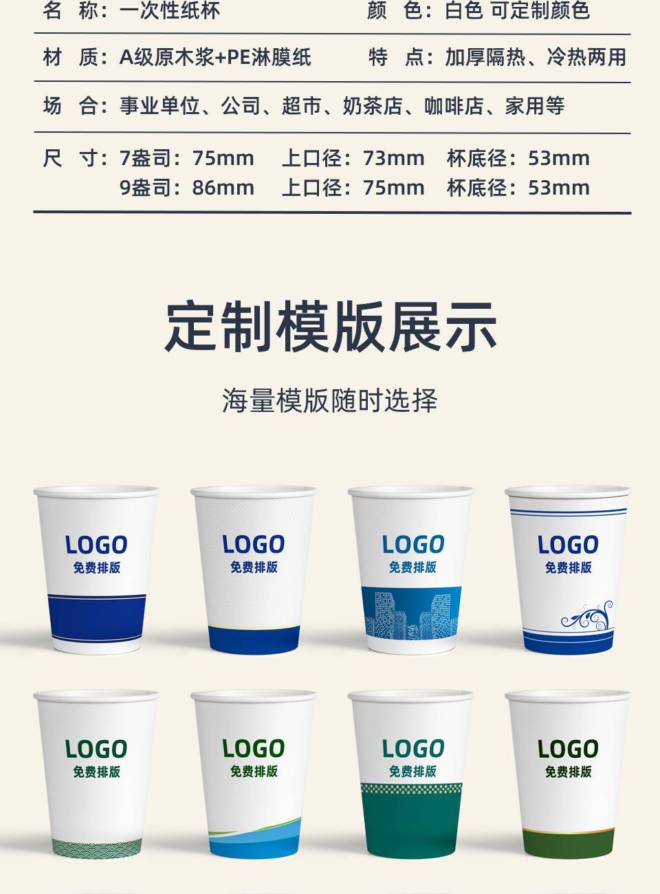 纸杯定制印LOGO加厚一次性茶水杯子订做商用印字