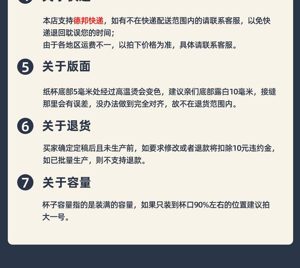 产品尺寸:上口径75mm下口径53mm高度86mm 内纸克重:280g 外箱尺寸:64*50*65cm 主要成分:原生木浆 执行标准:GBT20808 卫生标准:GB15979 卫生许可证:(豫)卫消证字(2024)第0063号 产品等级:合格