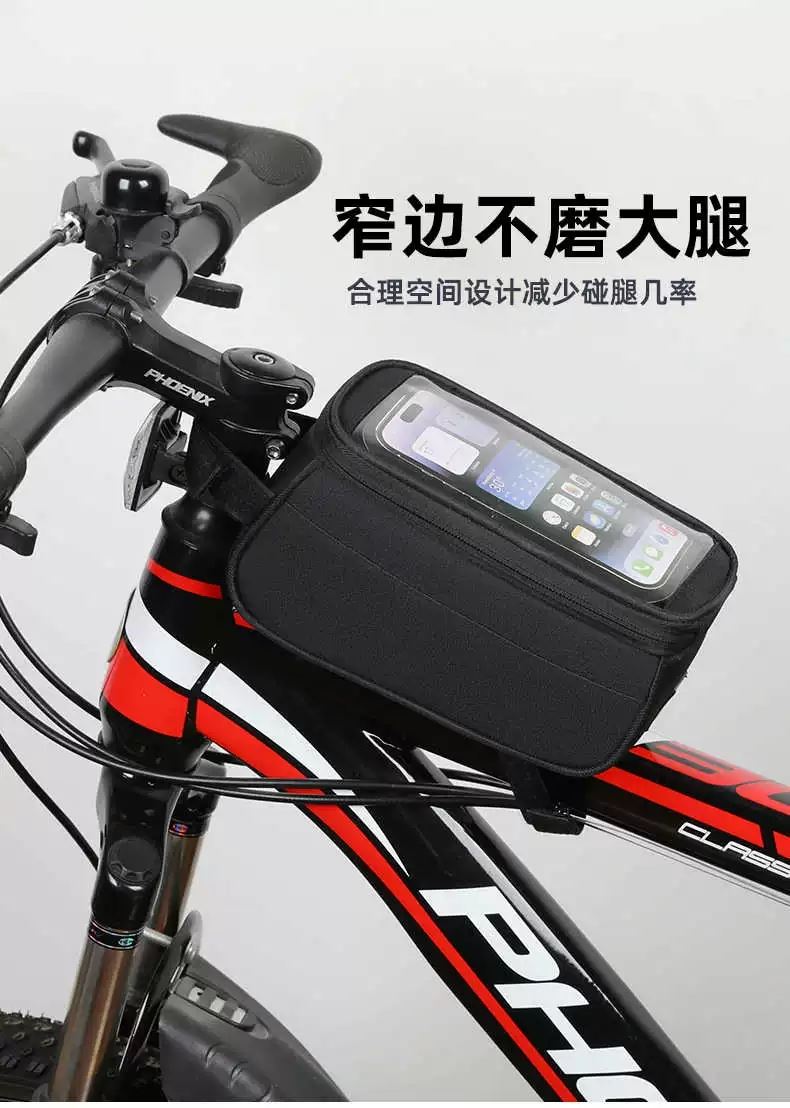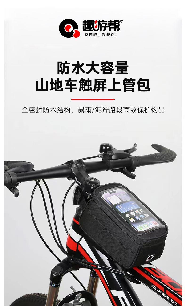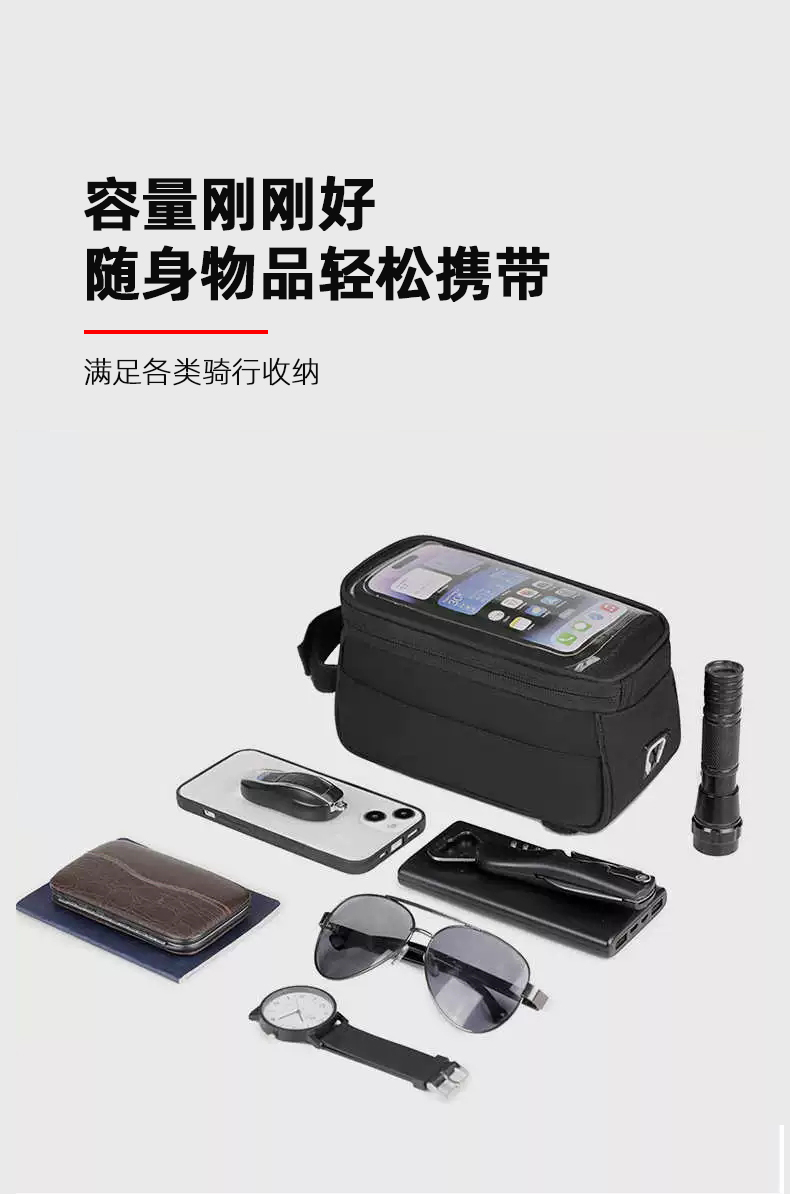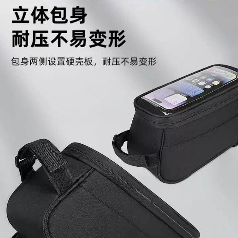 材质 涤纶+夹网布 颜色 黑色 尺寸 20*9*11cm (测量方法不同,可能存在1-3cm误差,实际尺寸以实物为准) 触屏 7.0寸 重量 0.15kg 全密封防水结构,暴雨/泥泞路段照样保护物品 超灵敏触控视窗,骑行中隔屏切歌、划地图、接电话 加宽加深扩容仓,轻松吞下大屏手机+充电宝+钥匙+能量胶,告别骑行背包负担 多个防滑固定点,碎石路、速降颠簸不位移 一拉一扯秒拆包,进店补给不怕丢