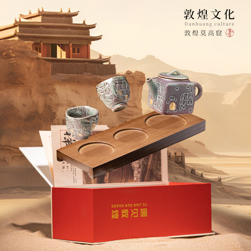 尾桥下窑遇见敦煌一壶两杯茶具套装年会伴手礼节日赠品礼品