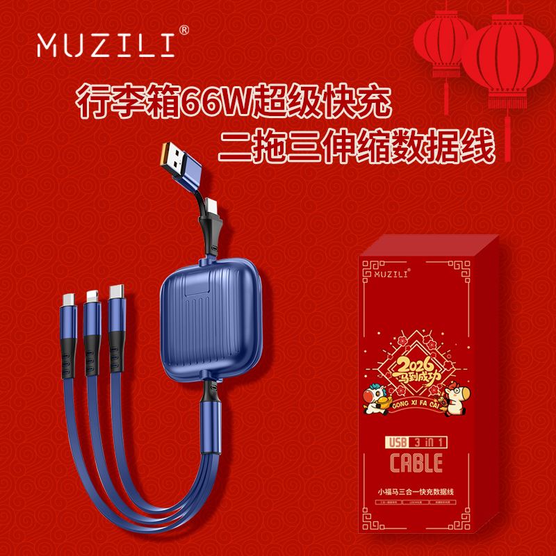 MUZILI·小福马66W旅行箱二拖三超级快充伸缩数据线
