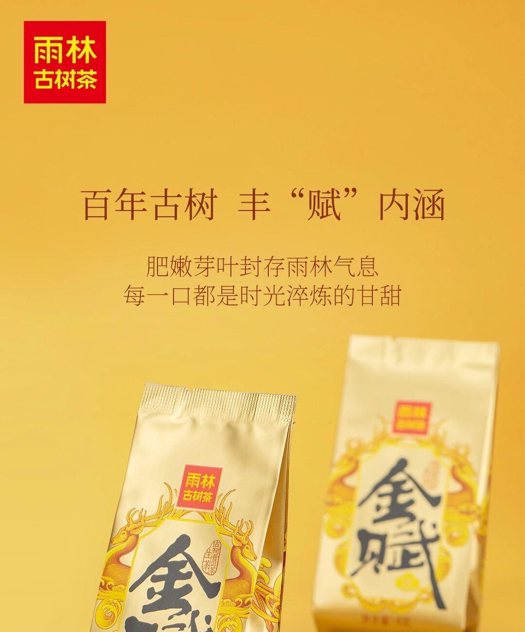【生产工艺】 (古树普洱茶 · 生茶) 散茶 【规 格】 4克/袋 、48袋/套 【配 料】 云南大叶种古茶树晒青茶(一芽二叶) 【上市年份】 2025年 (生产日期见产品外包装) 推荐理由: “金”典出色, 天赋不凡 。 古树茶一芽二 叶, 丰富内涵锁住甜醇 。 花香蜜韵层次分 明, 成就好滋味的天“赋”法则 。 4克定量装, 给生活加点小“金”喜 。 金赋茶礼, 满“赋 ” 心意 。