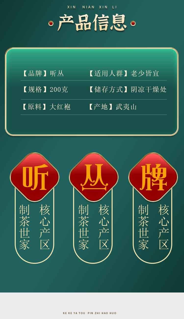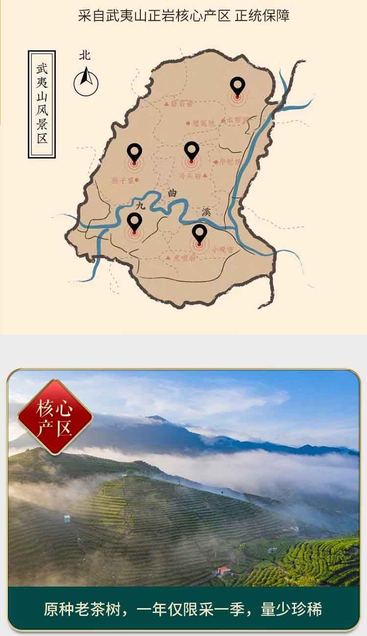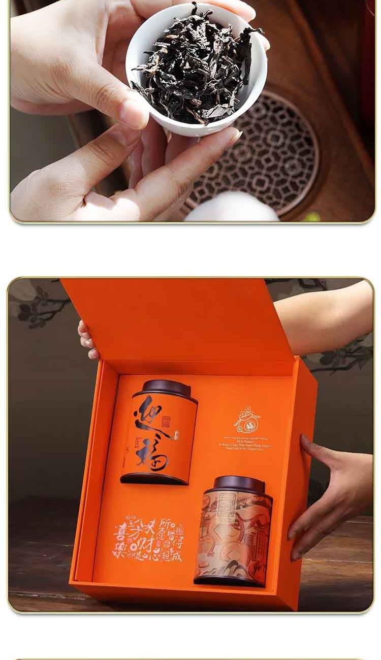 【茶名】:大红袍 【重量】:200g 【配件】:铁罐+礼盒+手提袋 【口味】:清香型 【产地】:福建·武夷山 外形:紧结、壮实、稍扭曲。 色泽:带宝色或油润;整碎:匀整。 香气:锐、浓长或幽、清远; 滋味:岩韵明显,固味甘爽,杯底有香气。 汤色:清澈、艳丽、呈深橙黄色。