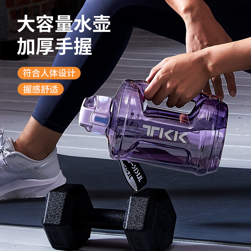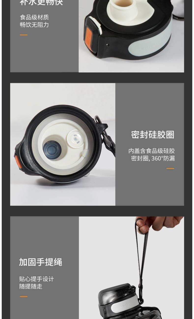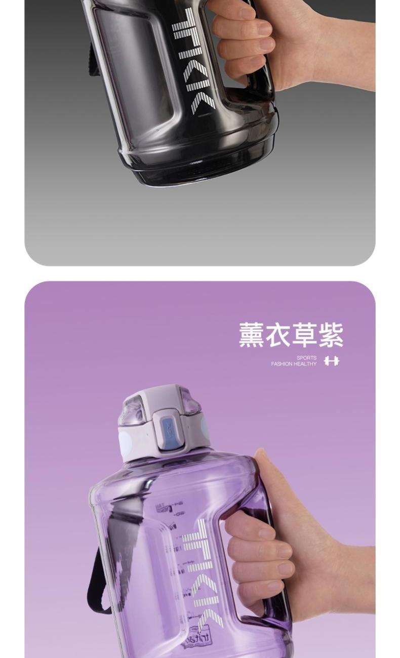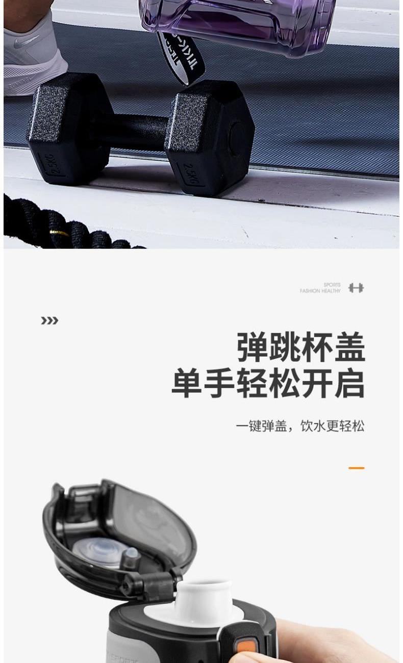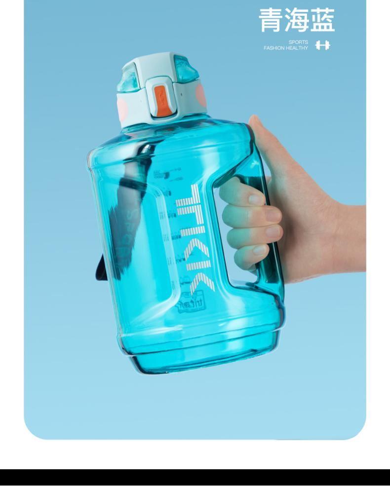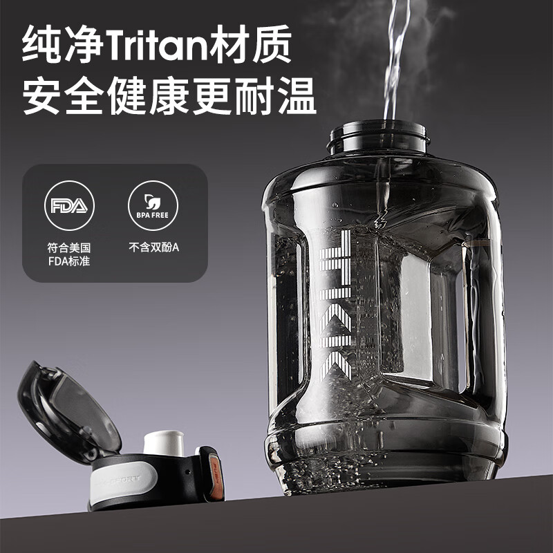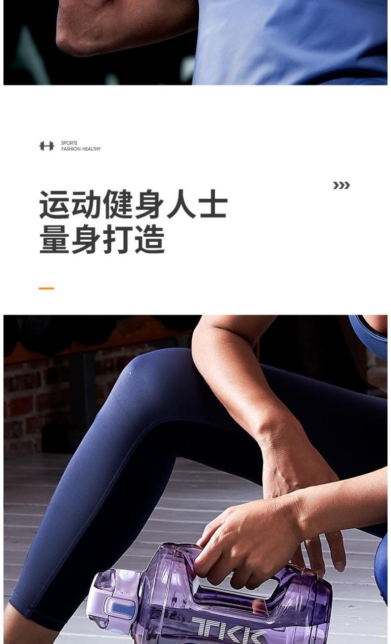 商品容量:1800ml 杯身材质:tritan 商品净重:326g 商品尺寸:143X252mm 1.时尚运动感设计直饮杯 ;同时配送一个直饮吸管嘴,2种方式体验不同的喝水感。 2.杯身采用美国伊士曼Tritan进口材料,不含双酚A(BPA),风靡欧美的婴幼儿用品安全材质, 3.按压式一键弹盖, 轻松开合不费力,畅快补水; 4.宽扁的编织带提绳 手感好,外出轻松携带,随心随性 即拎即走 5.食品级硅胶防漏圈,密封防漏,安全可靠; 6.可拆卸配件,便于日常清洗,不易藏污纳垢; 7.圆润的饮水口设计,舒适口感,不侧漏不呛喉, 8.安全锁扣 锁紧杯盖,防止杯盖不慎弹开漏水/烫伤,安心无忧; 9.硅胶防滑防烫杯杯套,安心使用;