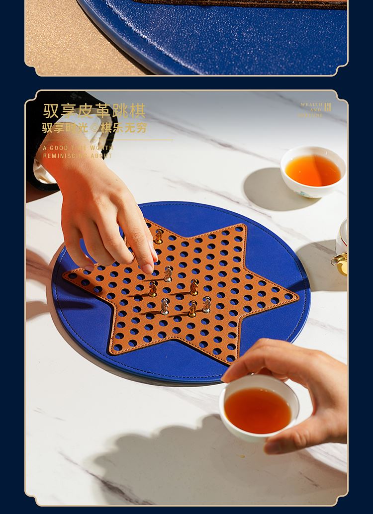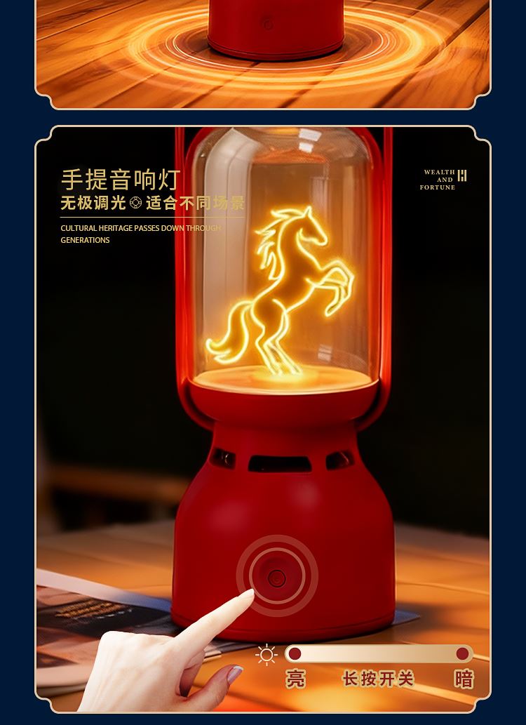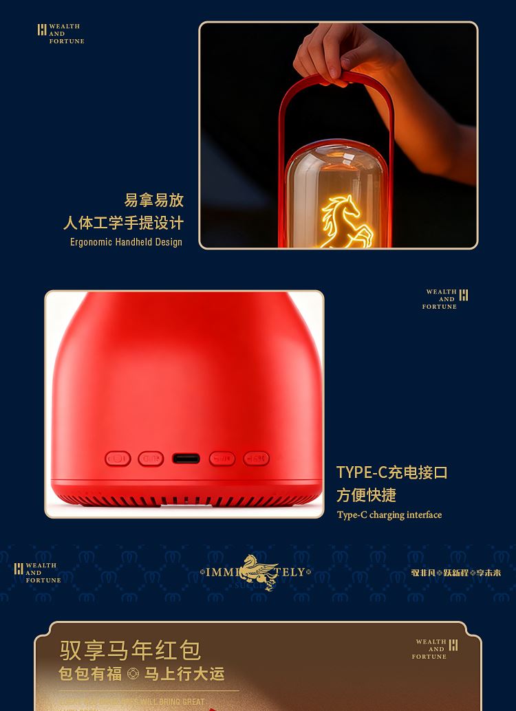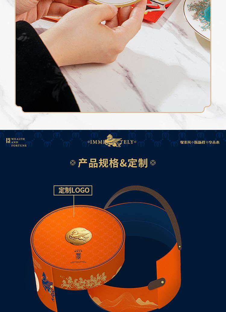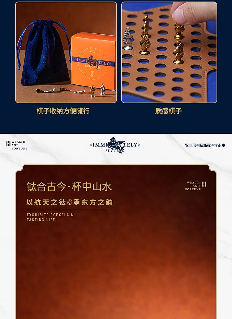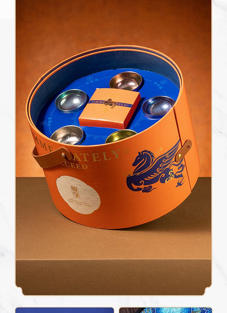 礼品配置清单: 双层主题礼盒、团圆皮革棋盘、马头棋子、五行钛杯、复古灯加蓝牙音响、新会陈皮1盒、老白茶1盒、新年红包、礼盒