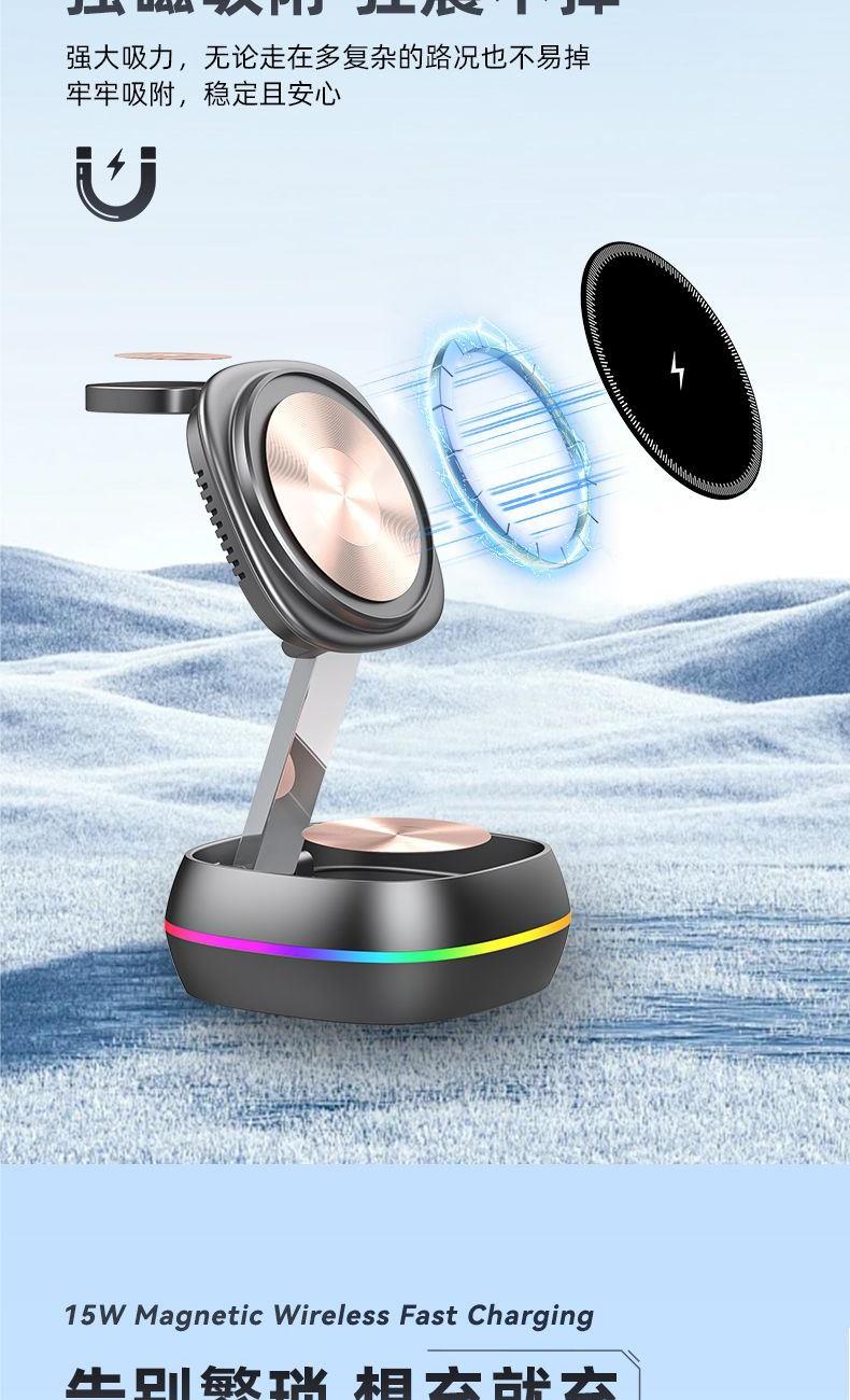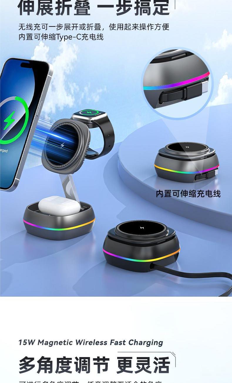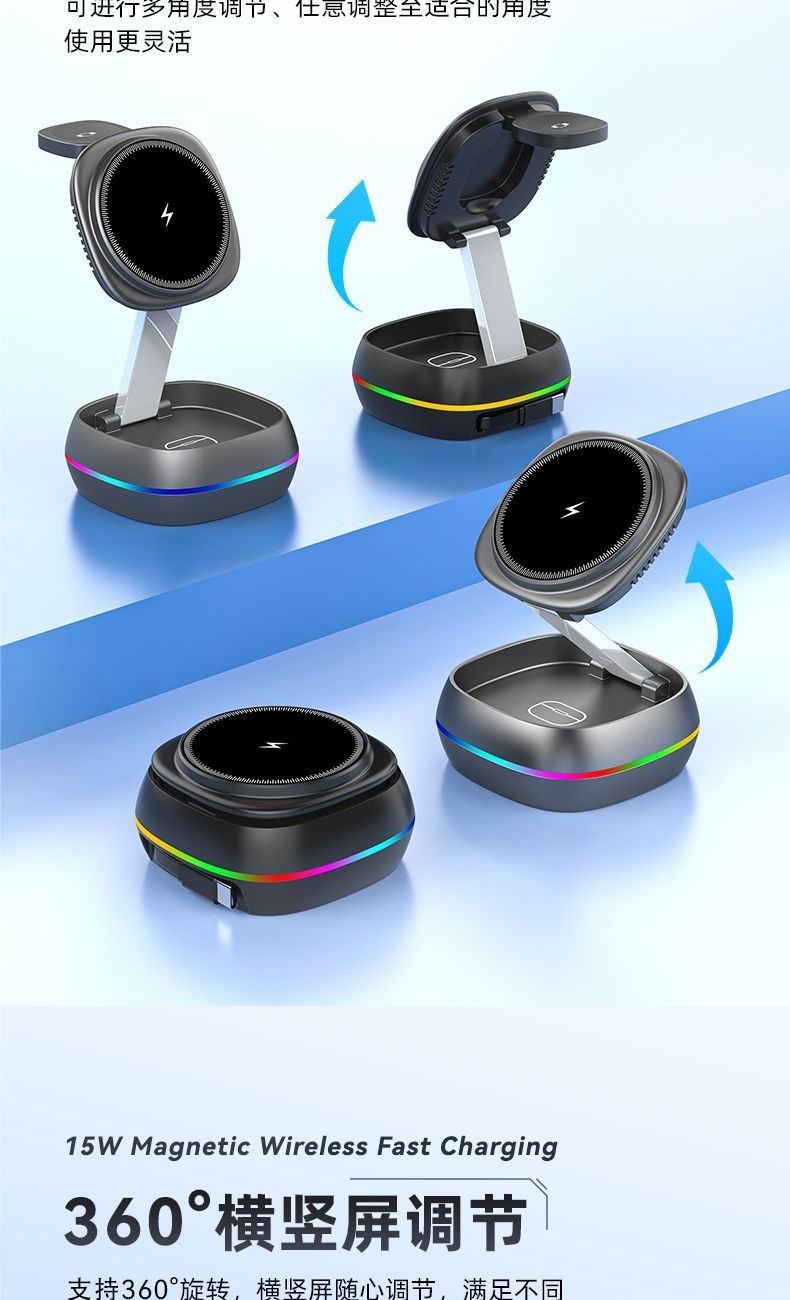 遥里逊无线充桌面折叠手机支架三合一充电器YLX-02-44