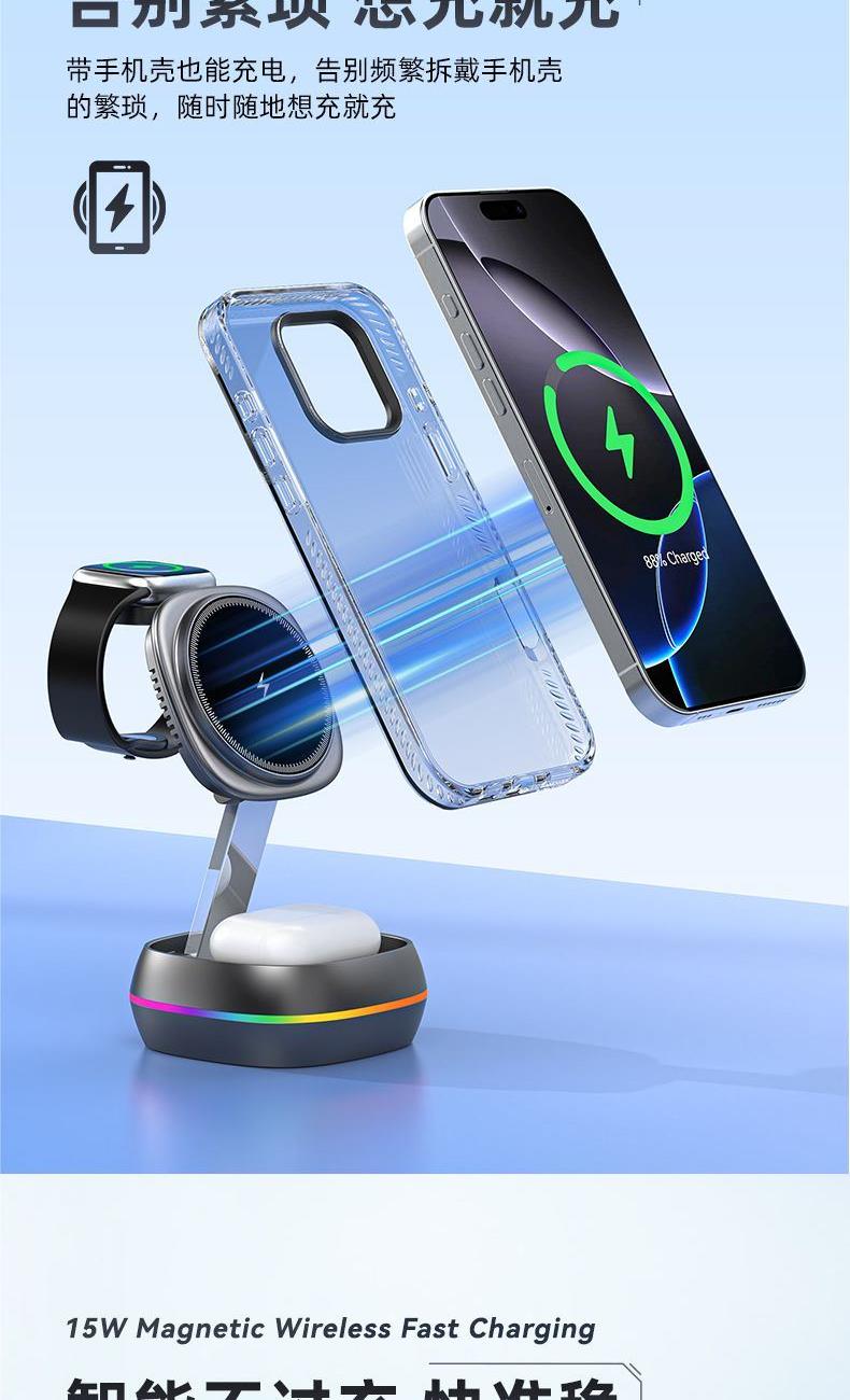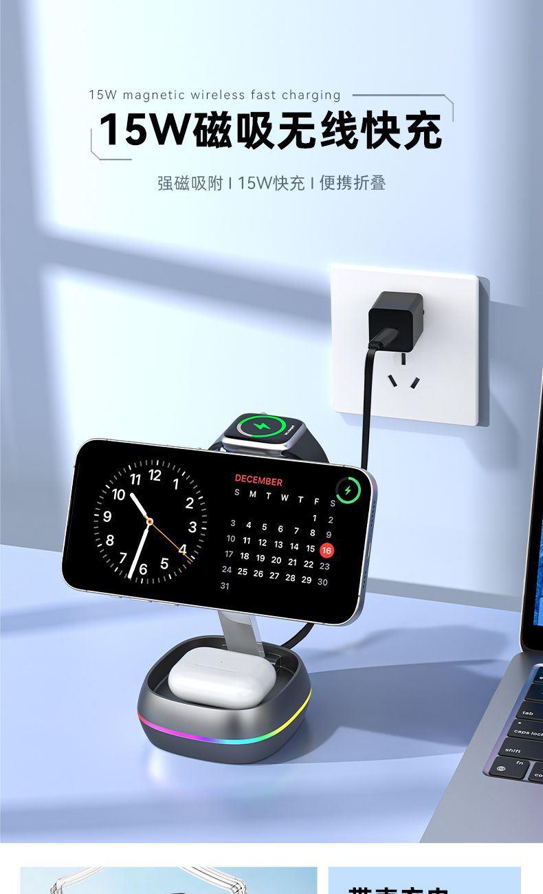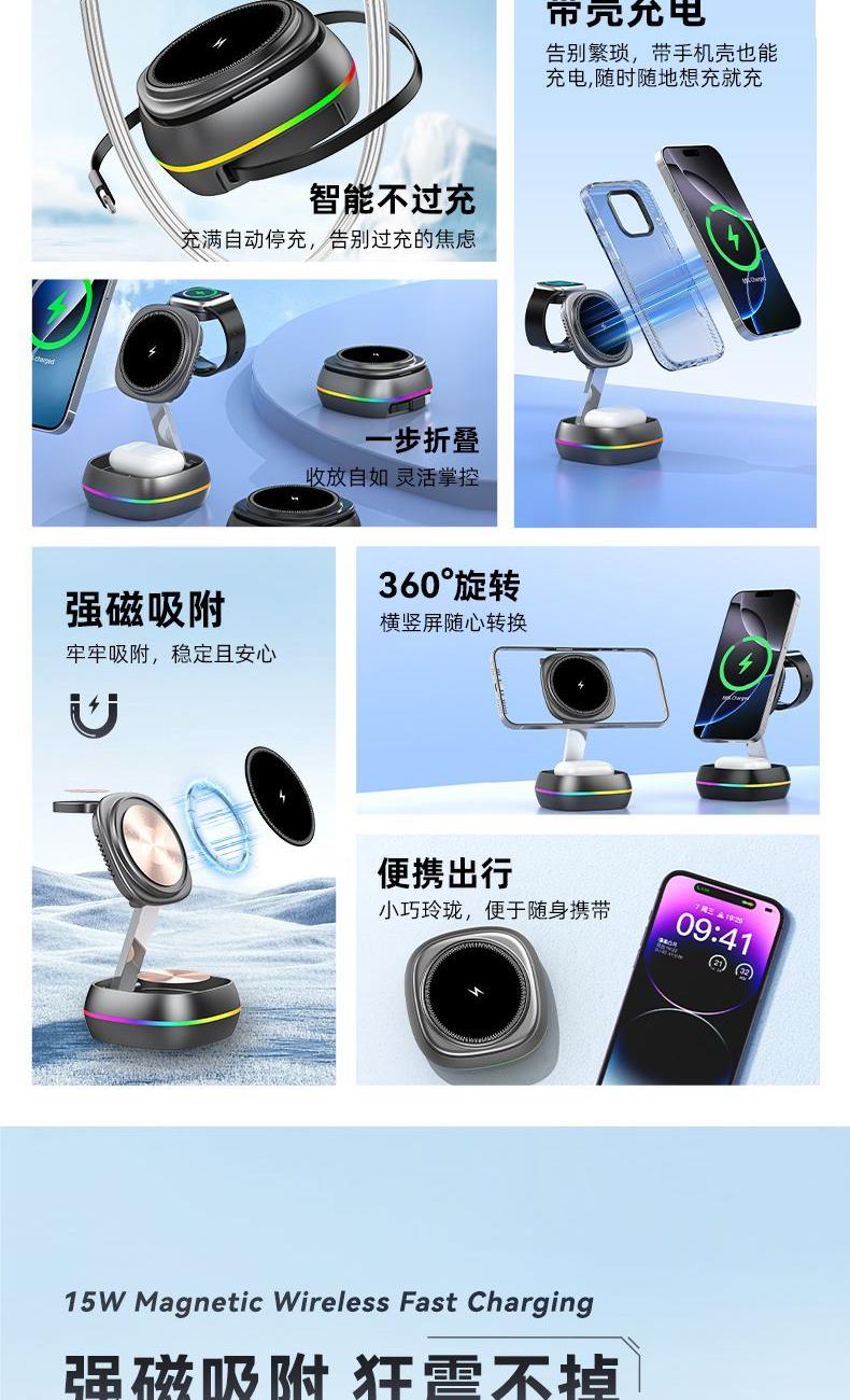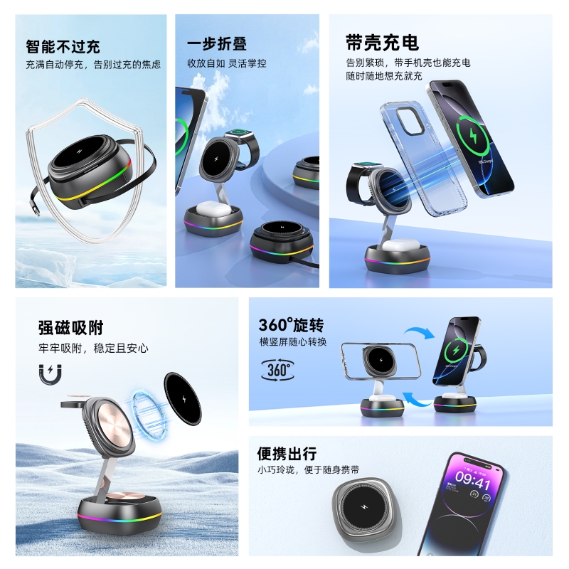 遥里逊无线充桌面折叠手机支架三合一充电器YLX-02-44