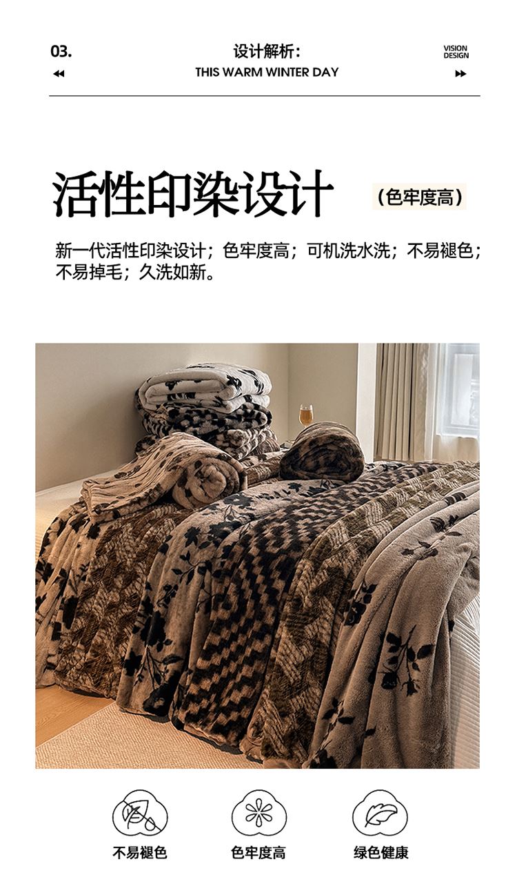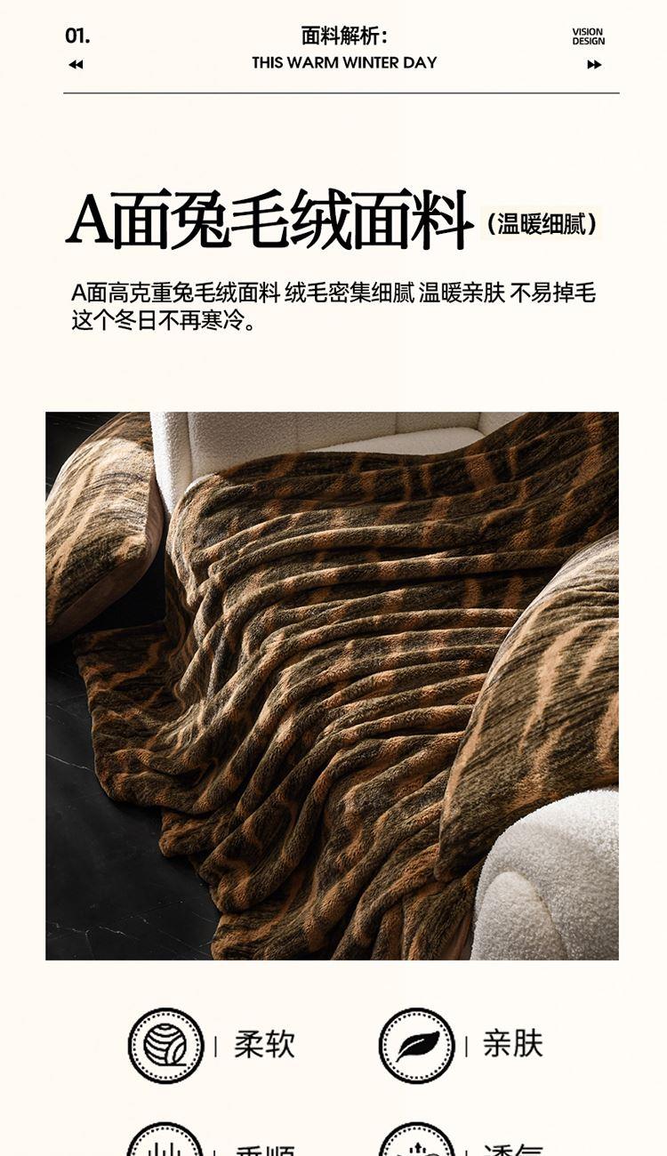 规格:200*230cm 面料:兔毛绒 克重:2200g 产品包装:精美礼盒 包装尺寸:48*35*16cm 1.兔毛绒面料纤维细长,表面光滑,柔软蓬松。 2.兔毛绒面料暖和,保暖性强。