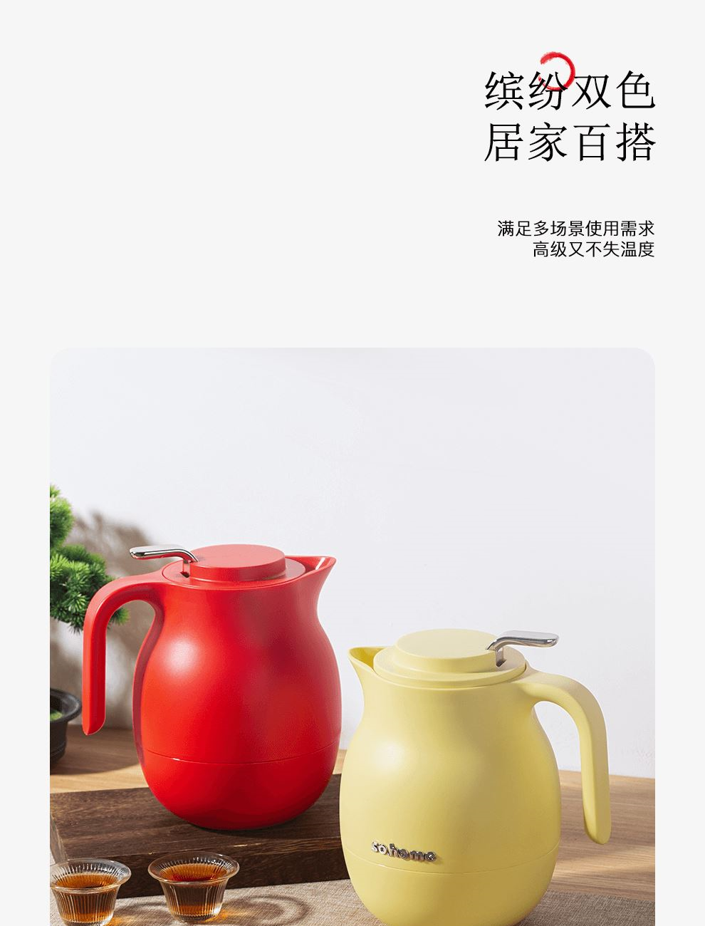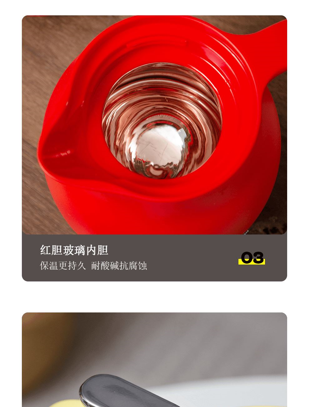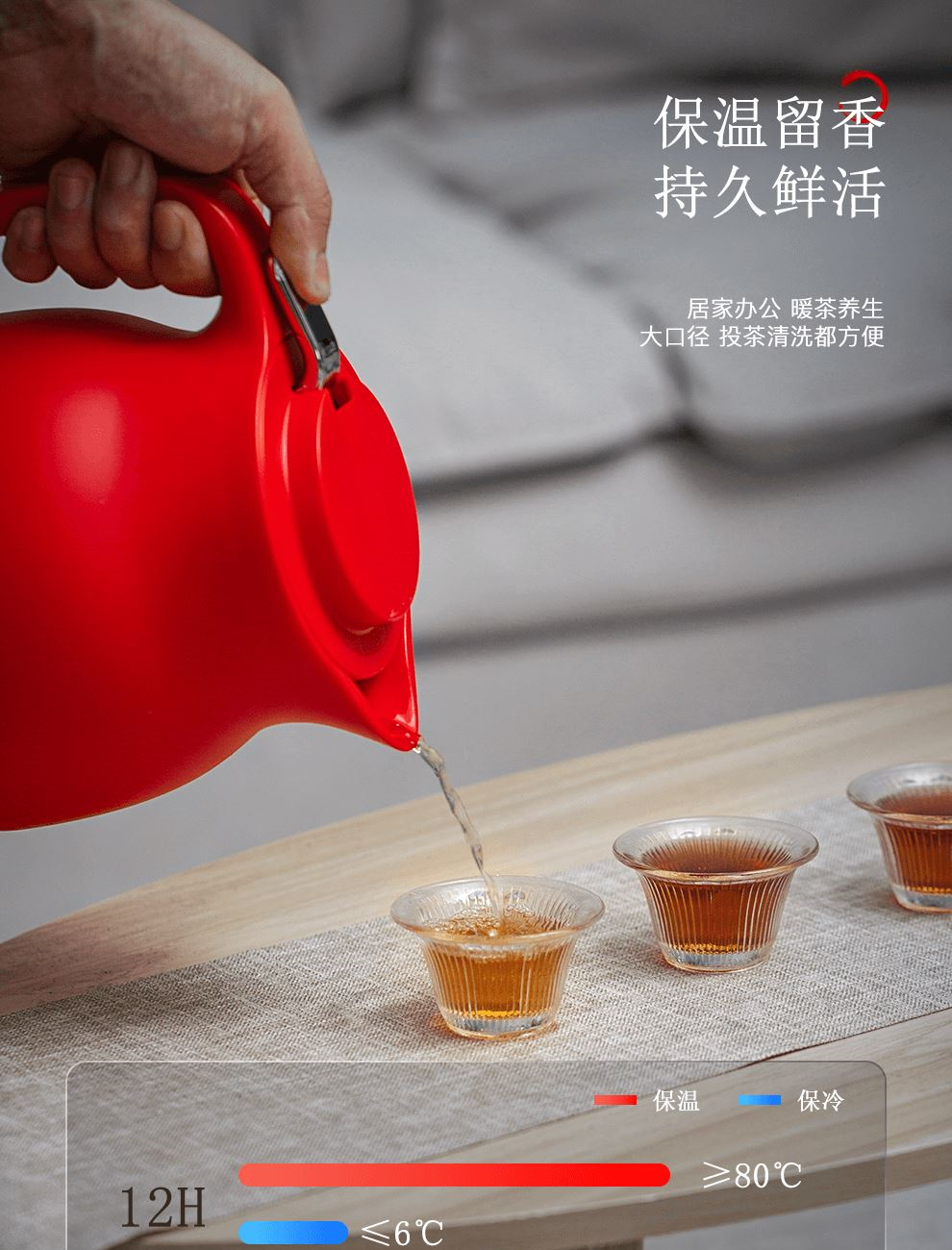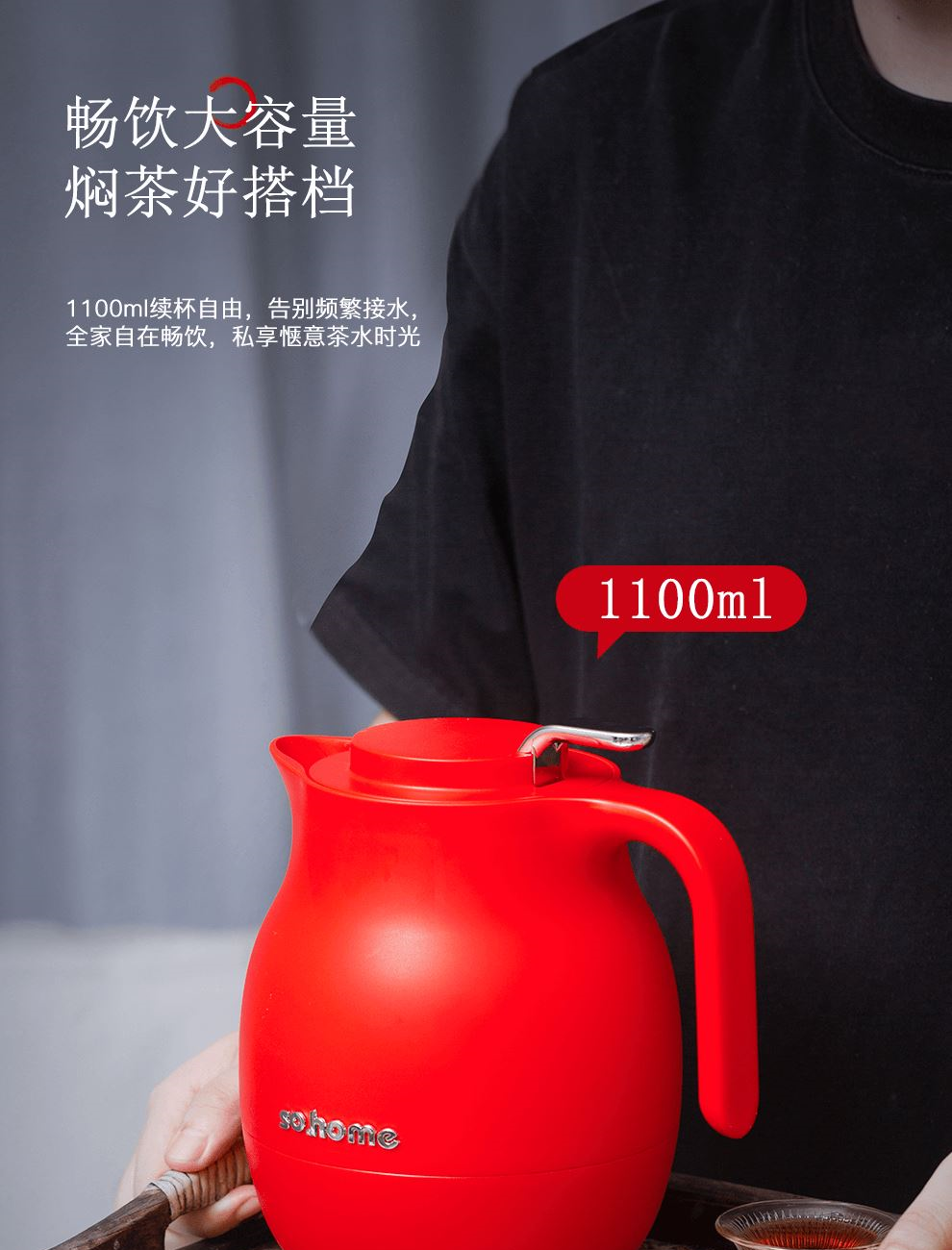 产品容量:1100ML 产品材质:外壳/壶盖/壶底/-PP聚丙烯(丙烯均聚物)、 内胆-高硼硅玻璃红胆 茶滤-奥氏体型不锈钢(316) 密封圈-硅橡胶 按键-ABS 产品颜色:红色、黄色 1、大容量316不锈钢茶仓,茶水分离,省心省力; 2、一键按压式出水,单手操作很轻松,把手握持舒适; 3、密封防漏,倾倒不漏水; 4、一键按压出水,倒茶水流顺畅,不挂壁; 5、红胆玻璃内胆,48小时保温,底部更耐压,材质更稳定。