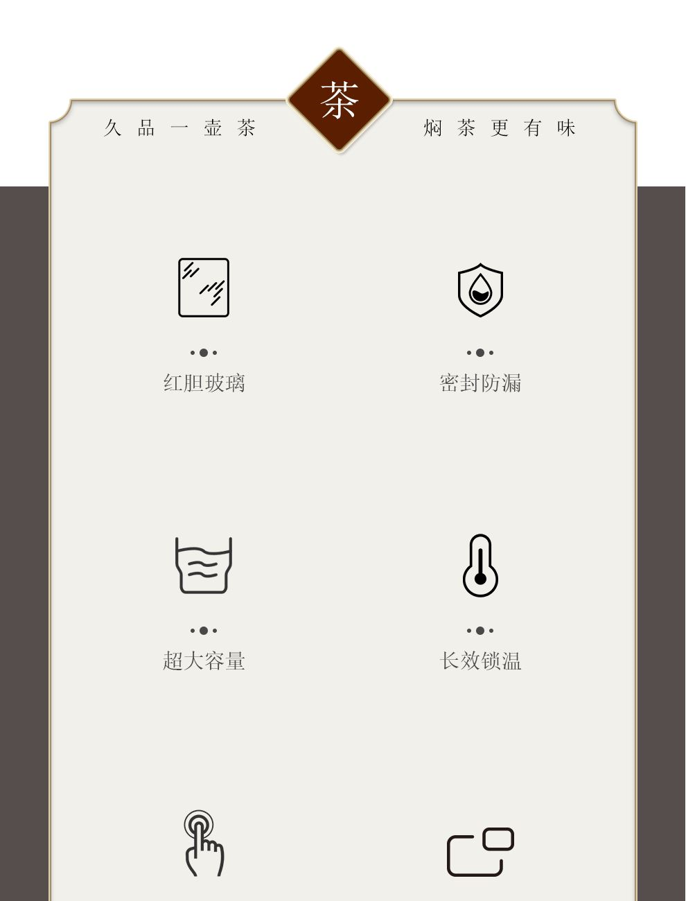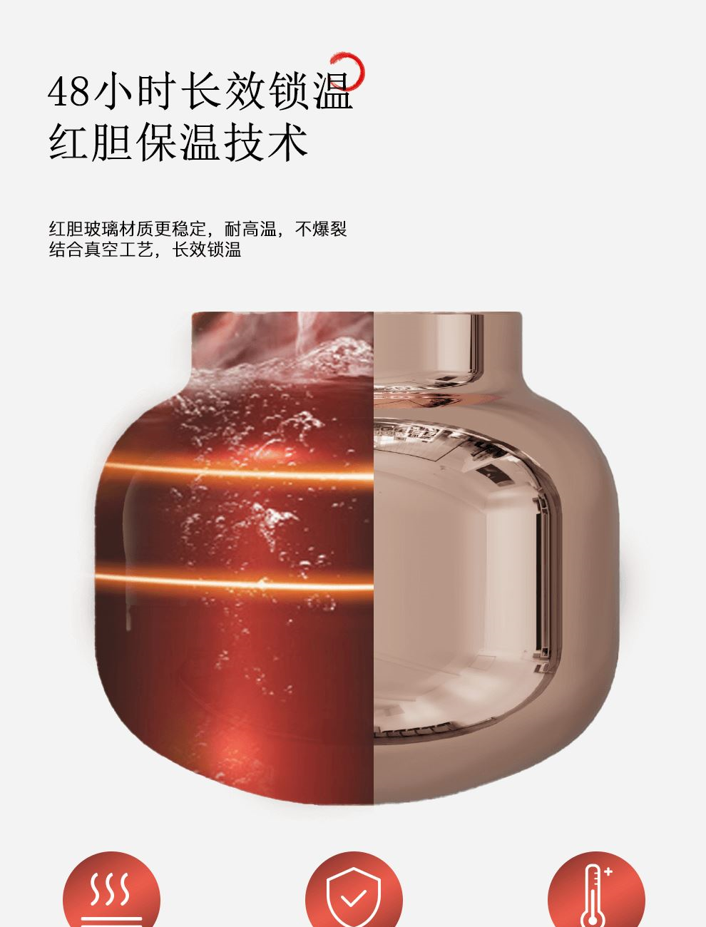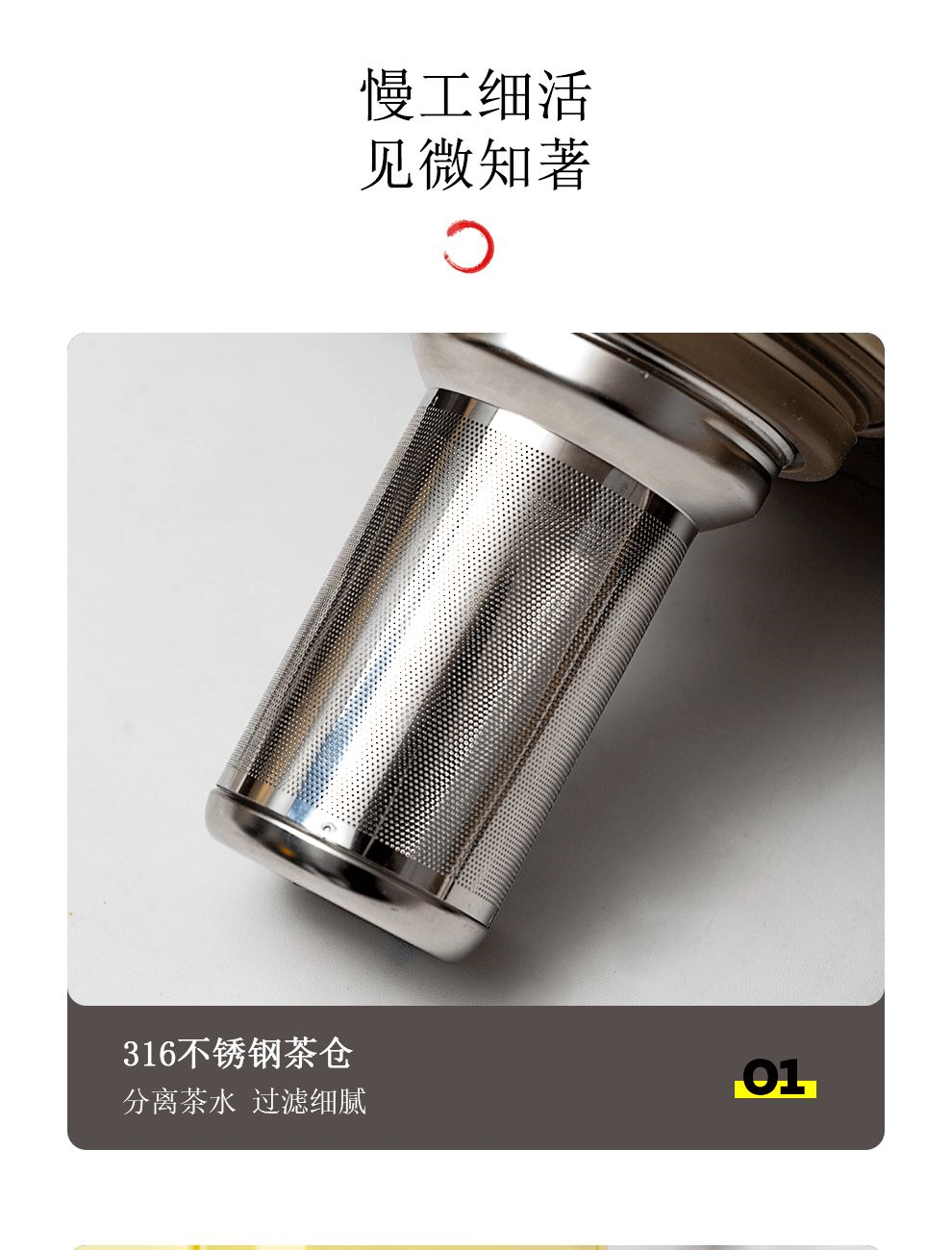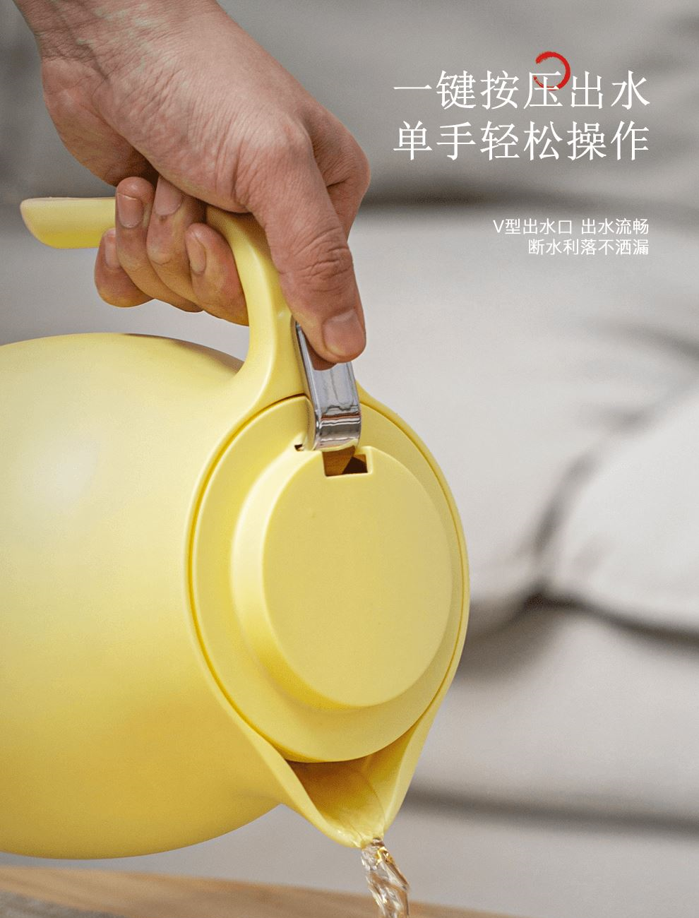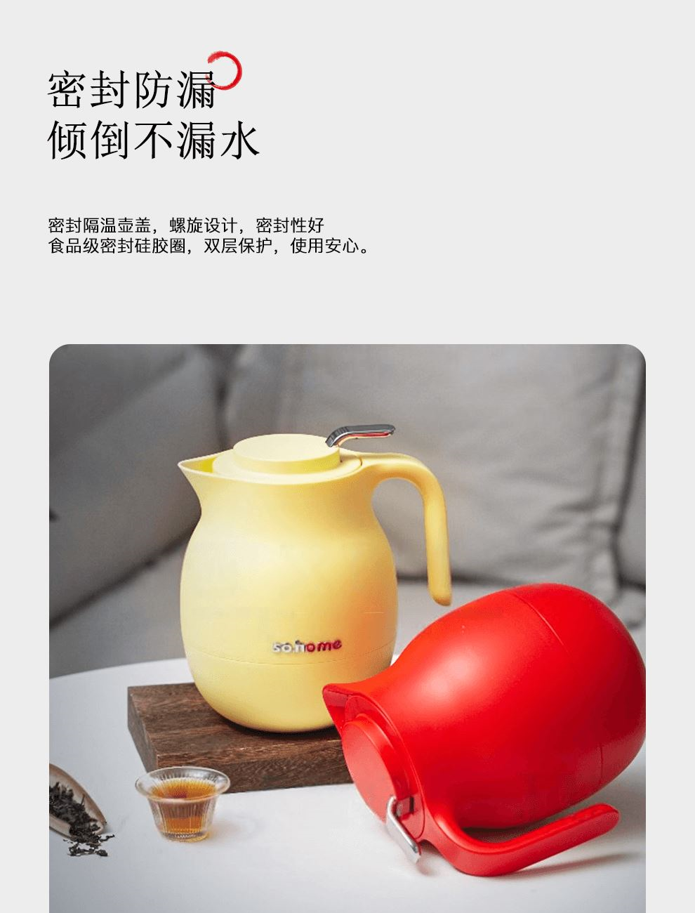 产品容量:1100ML 产品材质:外壳/壶盖/壶底/-PP聚丙烯(丙烯均聚物)、 内胆-高硼硅玻璃红胆 茶滤-奥氏体型不锈钢(316) 密封圈-硅橡胶 按键-ABS 产品颜色:红色、黄色 1、大容量316不锈钢茶仓,茶水分离,省心省力; 2、一键按压式出水,单手操作很轻松,把手握持舒适; 3、密封防漏,倾倒不漏水; 4、一键按压出水,倒茶水流顺畅,不挂壁; 5、红胆玻璃内胆,48小时保温,底部更耐压,材质更稳定。