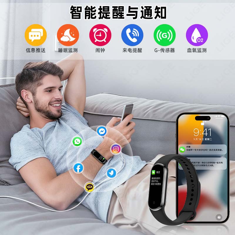 LIGE利格经典简约时尚智能手环BWM8mini