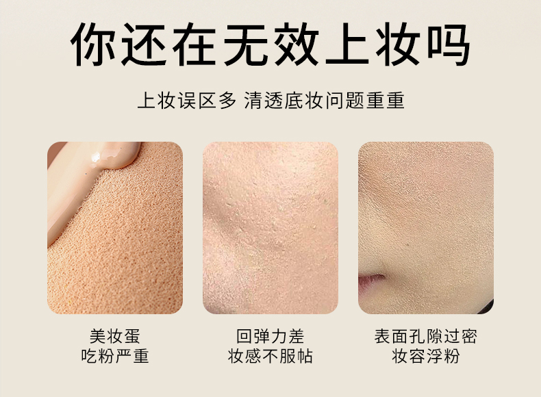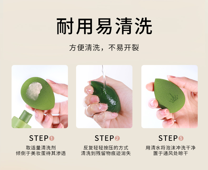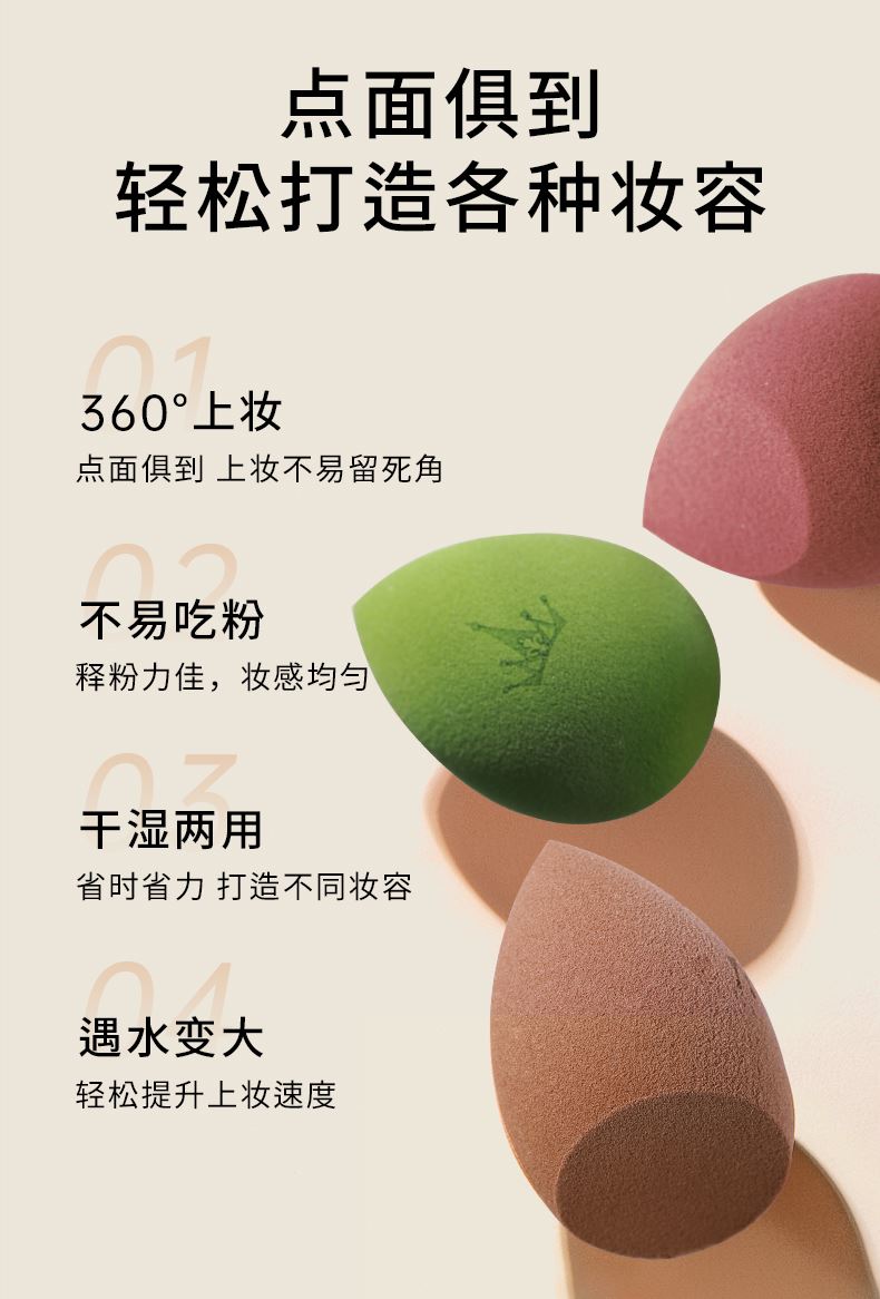 干湿两用设计:湿用可膨胀1.5倍,提升遮瑕力;干用弹性佳,适合定妆