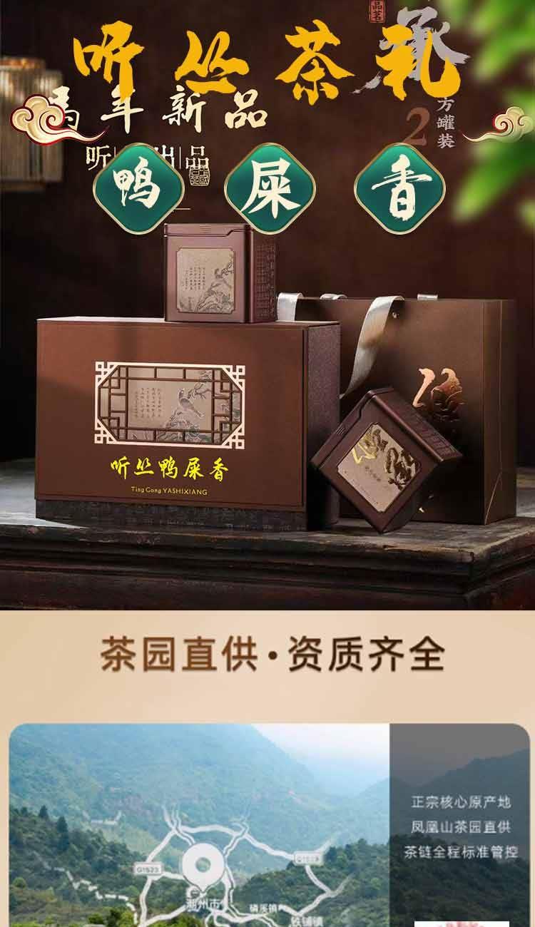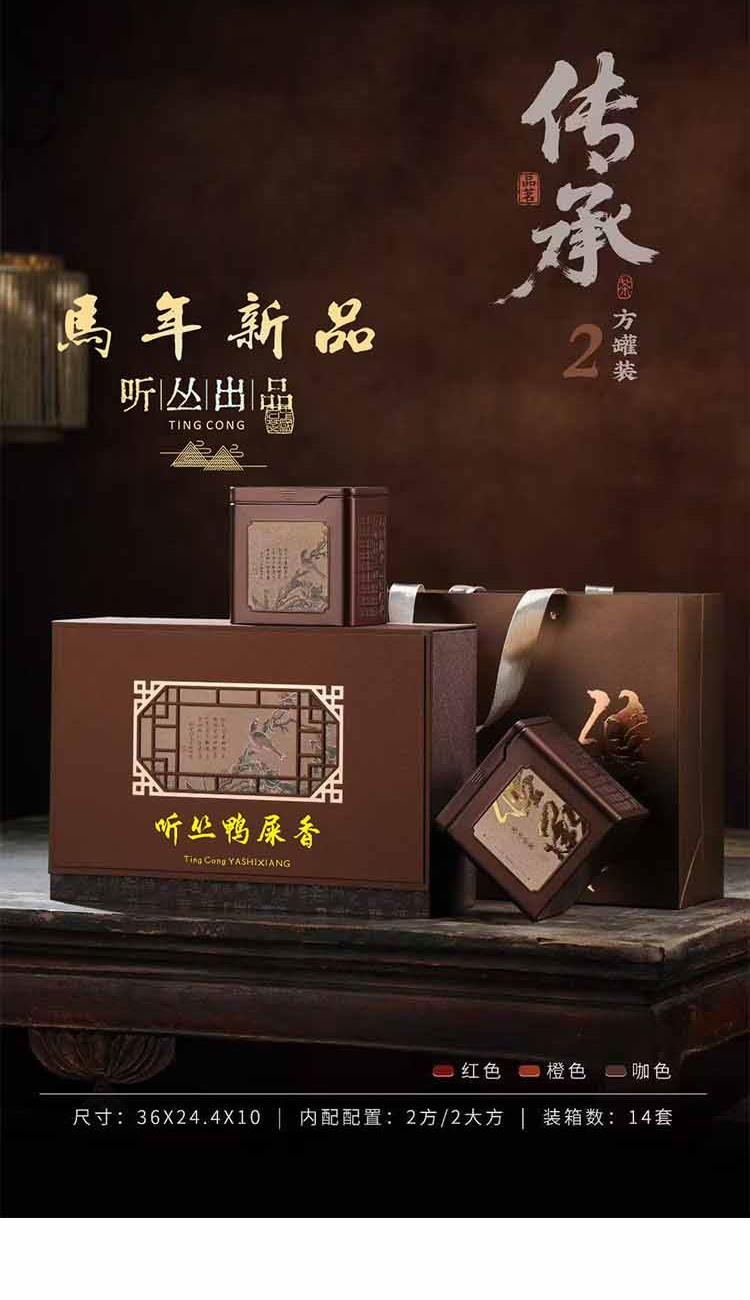 【茶名】:鸭屎香 【重量】:250g 【配件】:铁罐+礼盒+手提袋 【口味】:清香型 【产地】:广东·凤凰山 鸭屎香茶,作为一种独特的乌龙茶 特点: 鸭屎香茶主要产自中国广东省潮州市的凤凰山地区。 茶叶形状肥硕,色泽黑褐,叶底呈黄绿色,叶片肥厚,质地柔软。 香气特征: 鸭屎香茶的特点是其独特的香气,是一种难以言喻的复合型天然兰花香,带有果香、栀子花和蜜香等多种香气,层次丰富,浓郁持久。
