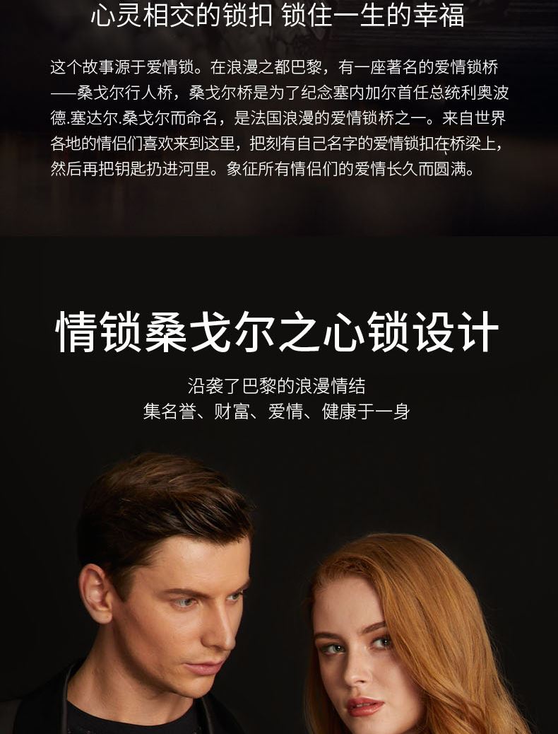 情锁桑戈尔设计灵感源自法国的桑戈尔行人桥,这是法国浪漫的爱情锁桥之一。相传相爱的恋人只要在这里结一把刻有双方姓名的同心锁,就能心心相犀,相爱到老。世界各地的情侣来到这里,为了见证自己的爱情,都会挂上属于他们的锁,祈祷爱情终将圆满。