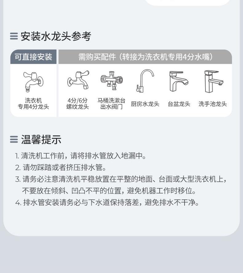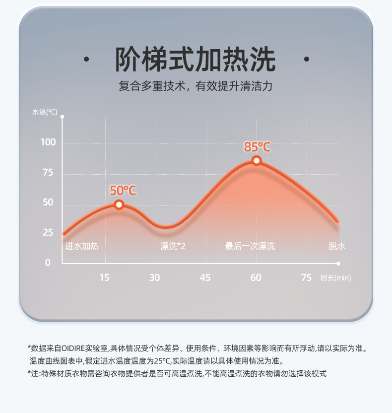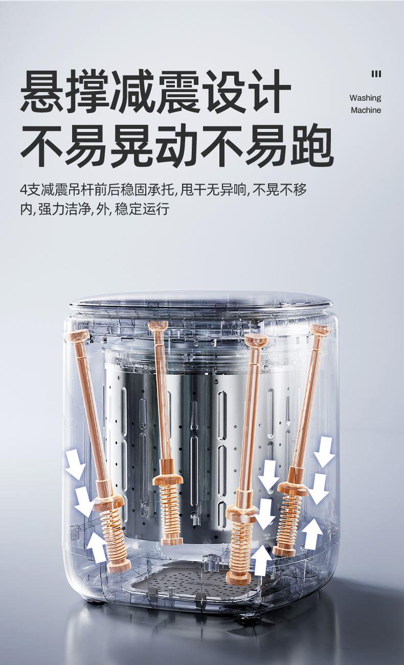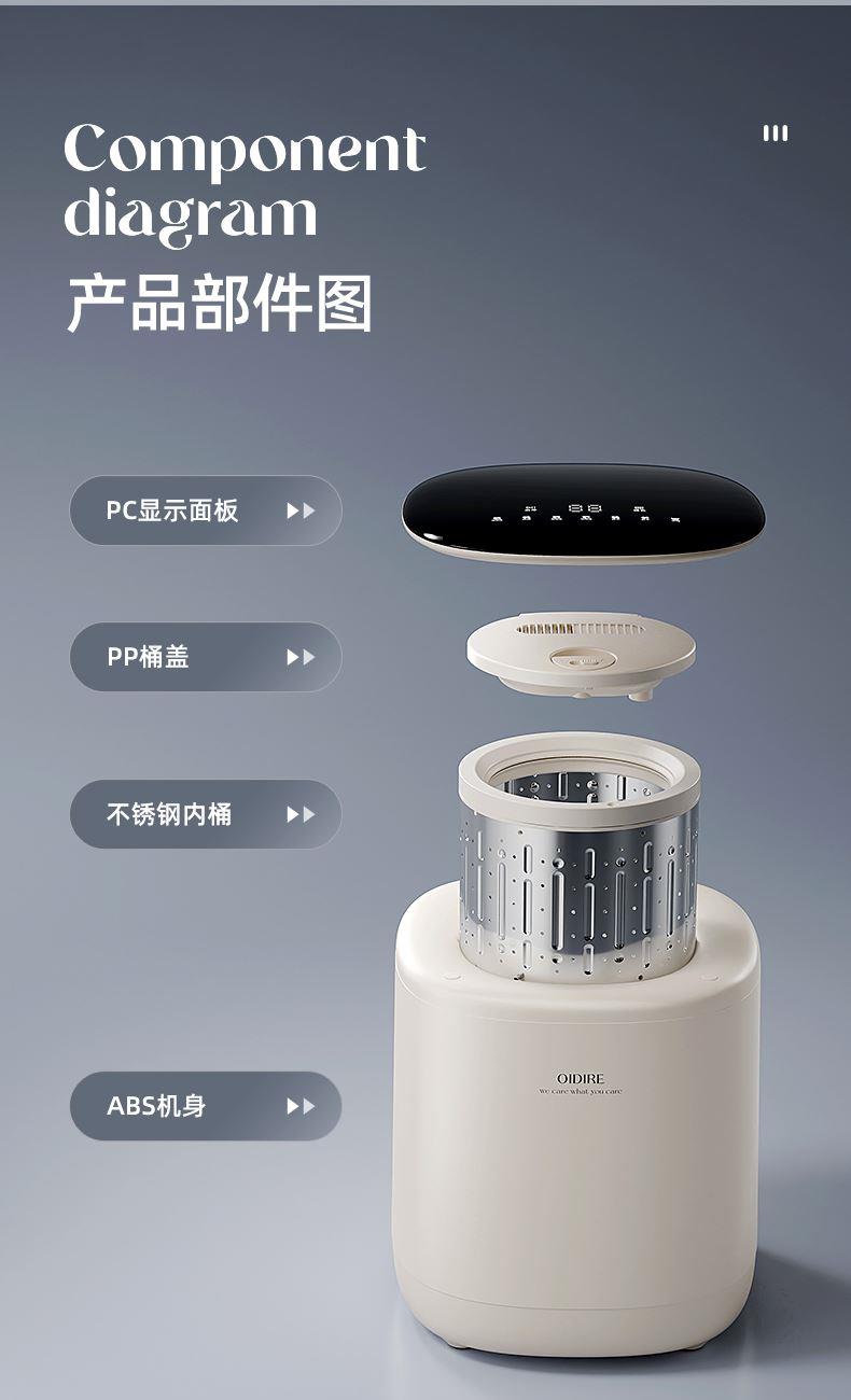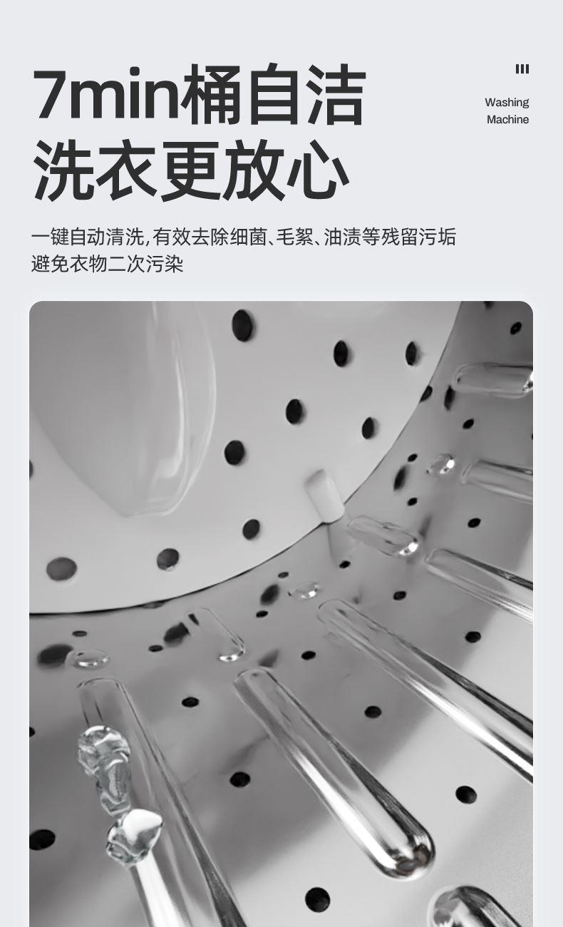 主要材质:PP+不锈钢内桶 电压:220V 功率:加热600W+洗涤20W+脱水36W 洗涤容量:7L 1、水位自感知,防缠绕流线型波轮、360度水流洗 2、可中途添衣,随添随洗,一键续洗 3、360度水流洗,去渍无死角那 4、高温加热洗,可达85℃清洗 5、开盖报警,盖上盖子可续洗 6、烘干过程,带UV功能