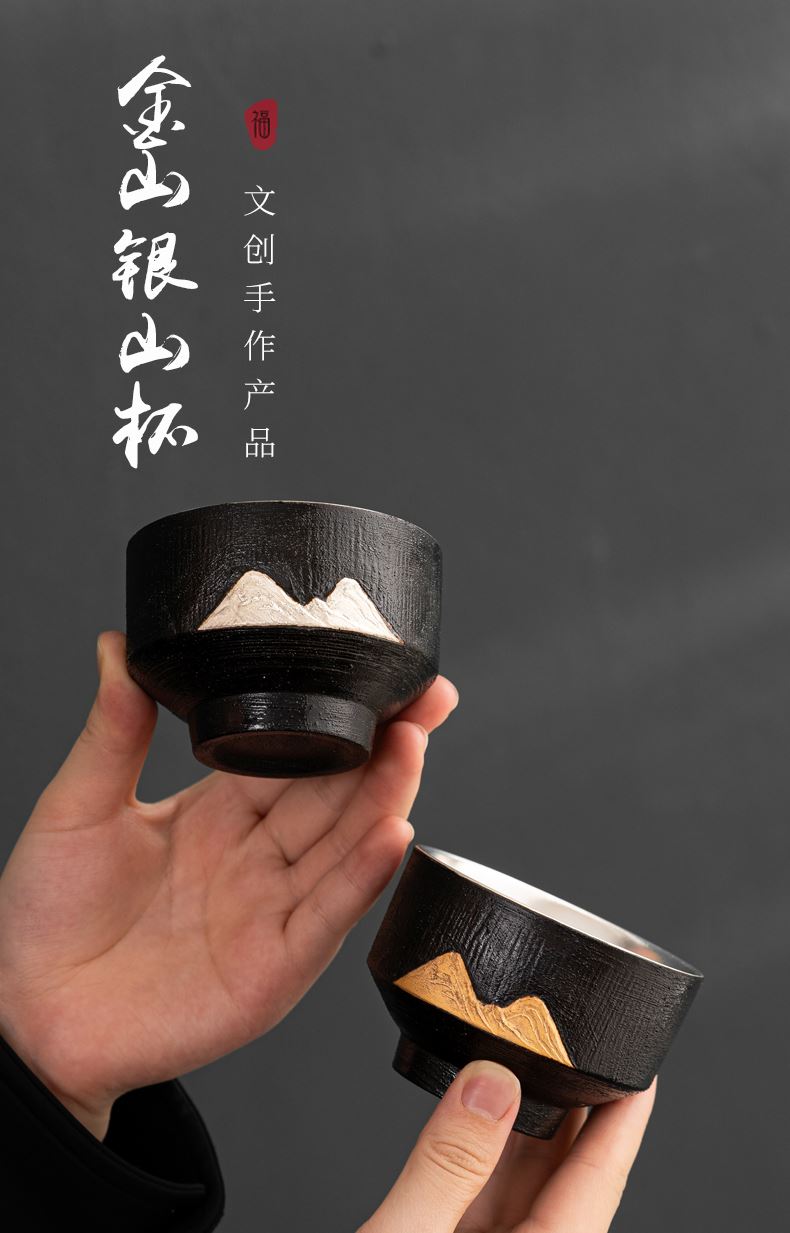 尾桥下窑陶瓷鎏金鎏银主人杯品茗杯茶室会所伴手礼节日赠品