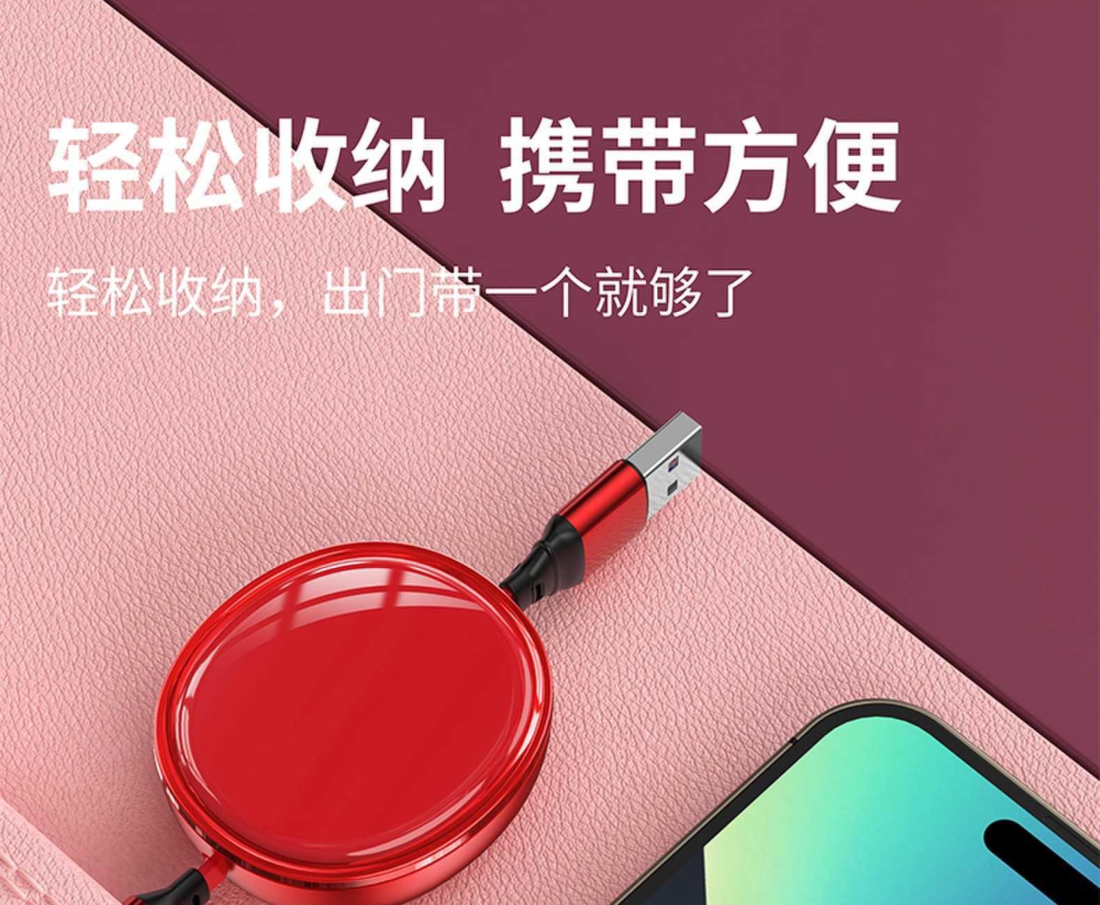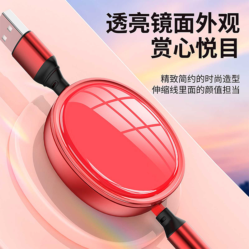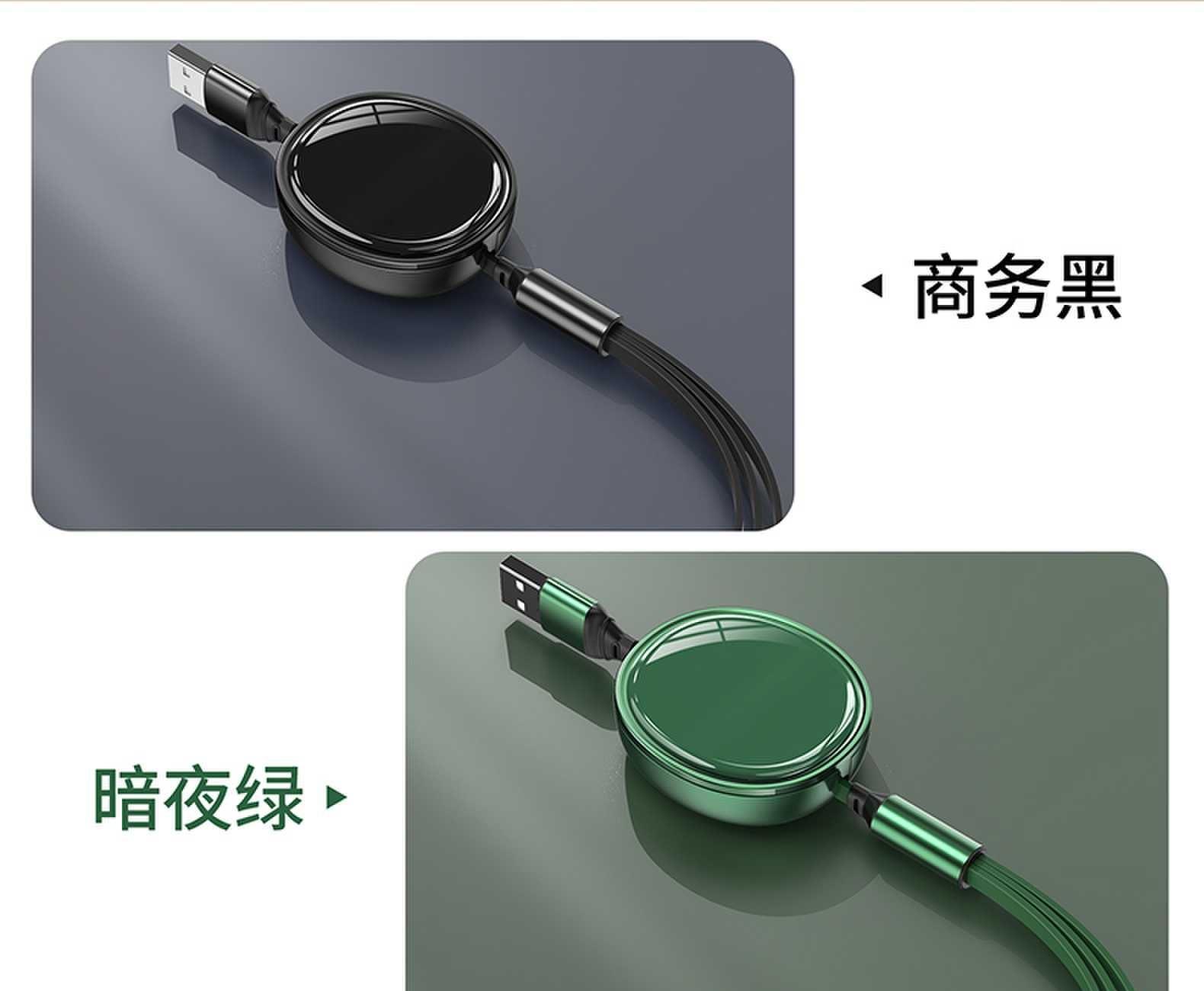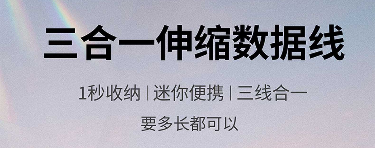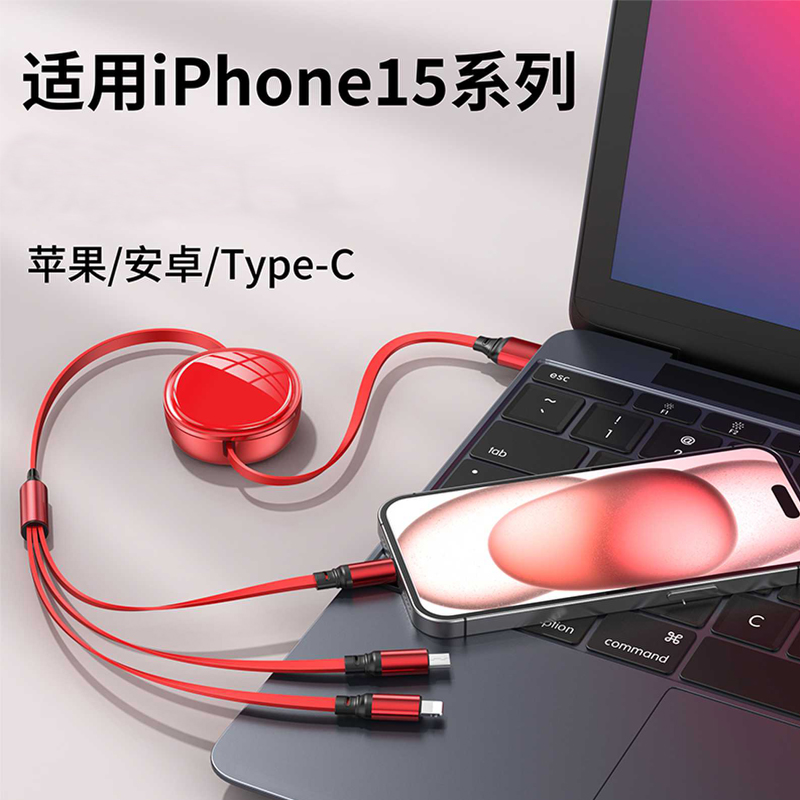 一拖三伸缩设计,兼容苹果15系列 66W超级快充,充电更快 三种接口满足各种手机 1.2米长度设计,使用方便 TPE材质耐用,不易折断 五档伸缩调节