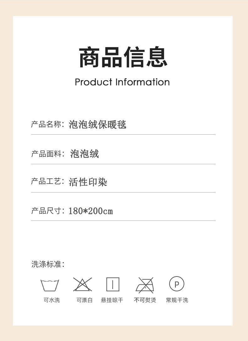 [规格 ]:180*200cm [ 面料 ]:泡泡绒 [ 克重 ]:1100g ▶泡泡棉面料质地柔软,亲肤性好,易于打理:抗皱性能好。 ▶有独特的泡泡效果具有层次感和立体感。 ▶泡泡棉面料具有防霉的特性,耐久性,不易磨损。