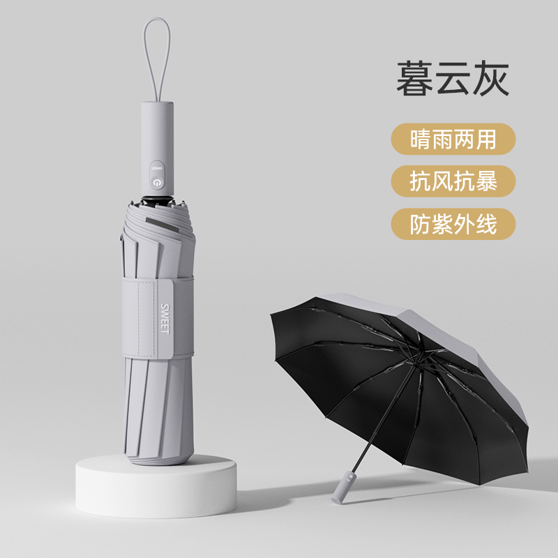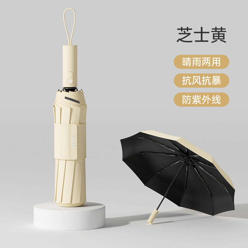 左都ZD2542--正向黑胶简约自动伞10骨晴雨伞
