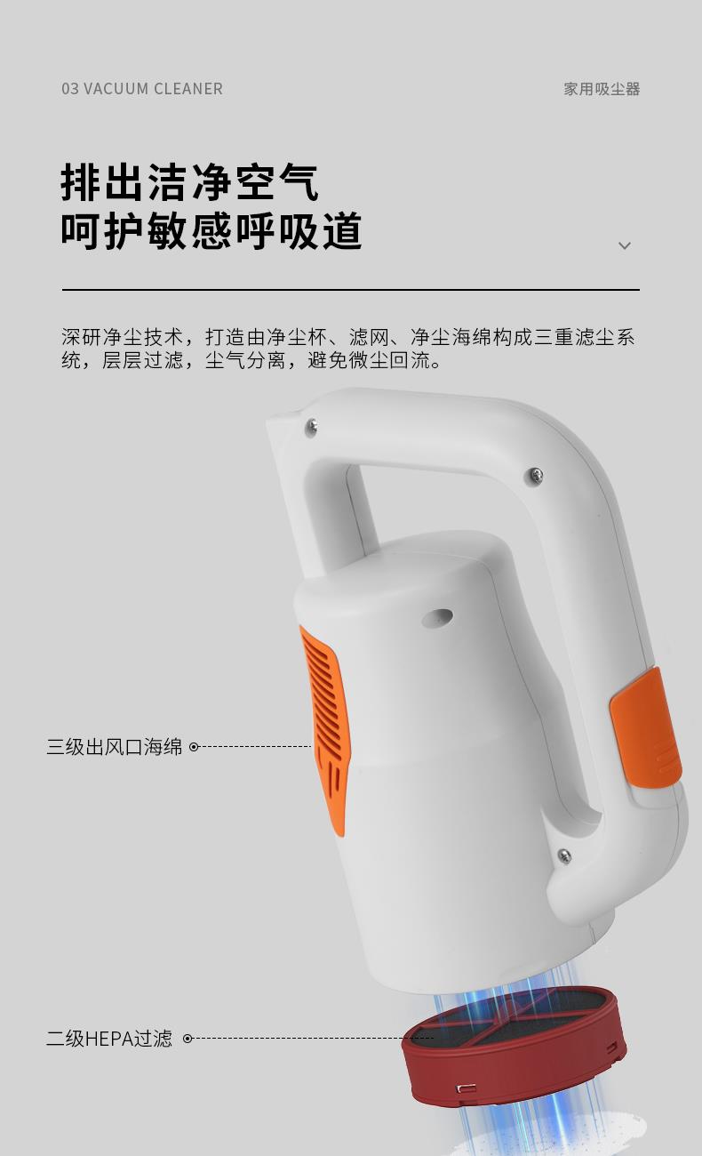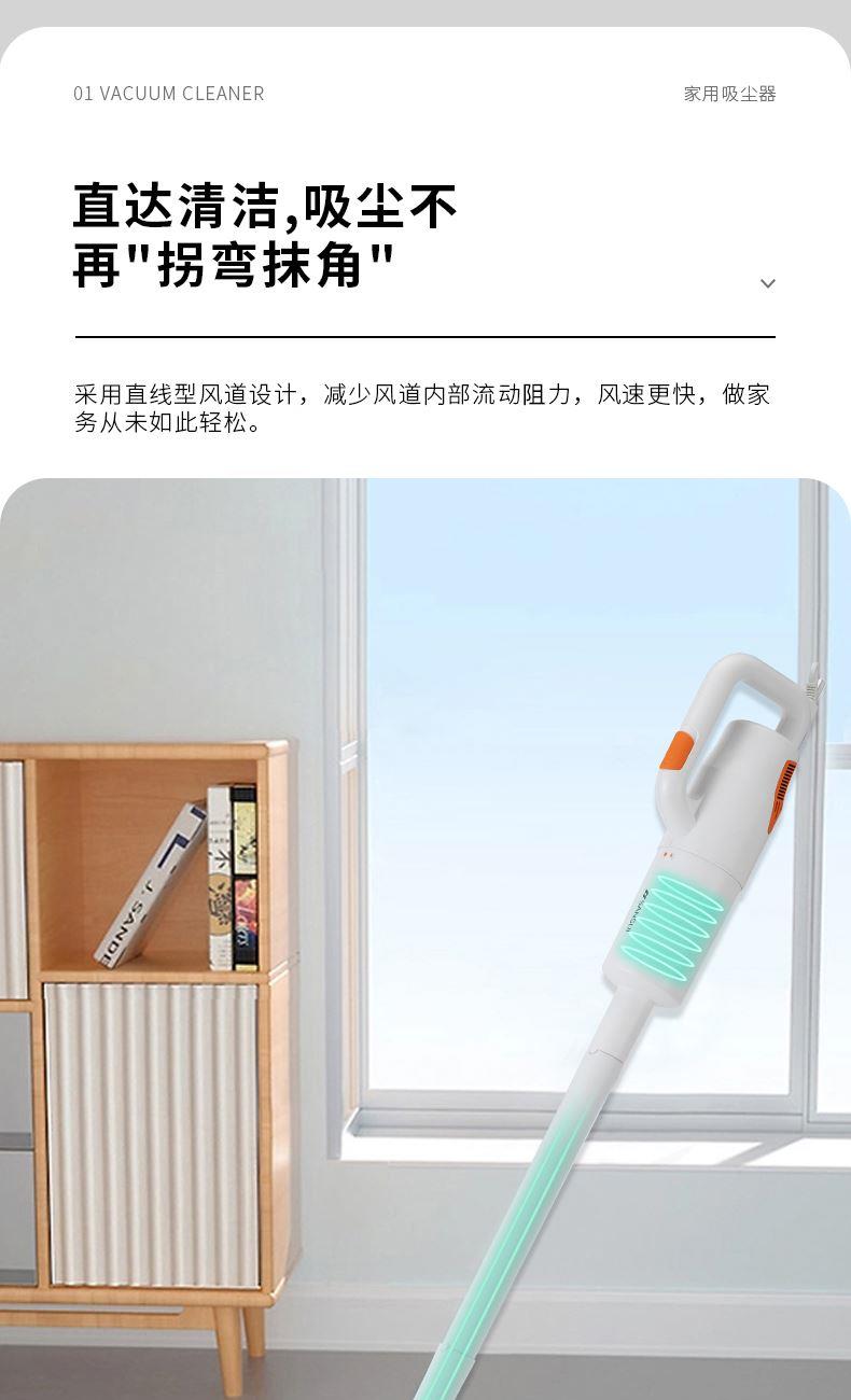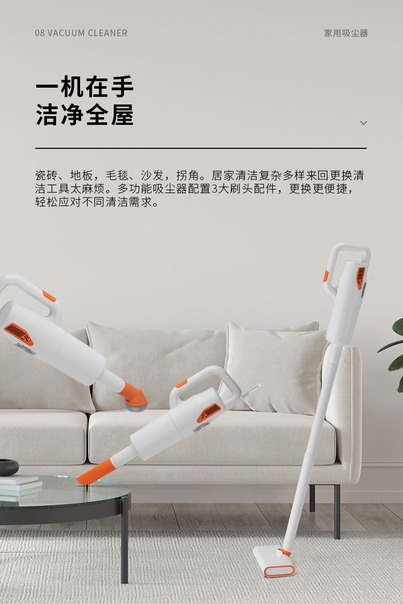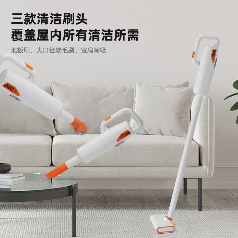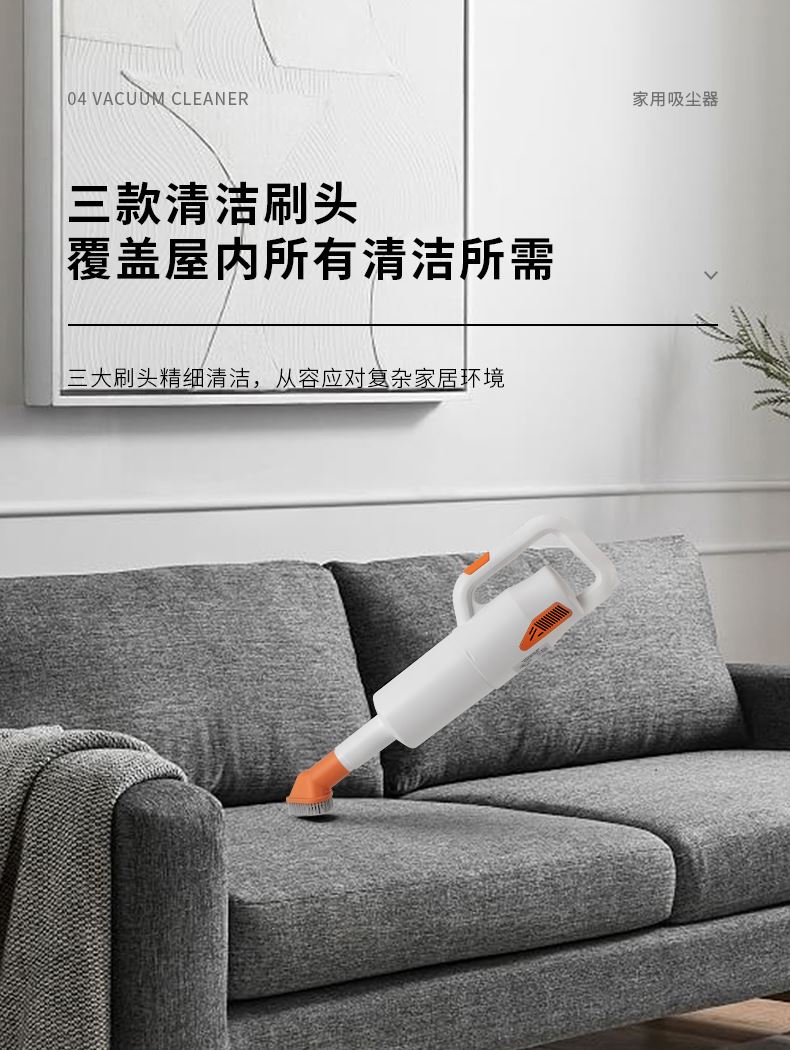 额定功率:400W 强劲小旋风大吸力降噪吸尘器 有线设计、手持/推杆两用设计 550ml大容量尘杯 三款清洁刷头从容应对复杂家居环境、多重过滤、高速电机、稳定功率输出 一键启动、灵活滚轮 主机*1、地板刷连接管*2、地板刷*1、毛刷*1、二合一扁吸*1、说明书 包装方式:彩盒+网购包装