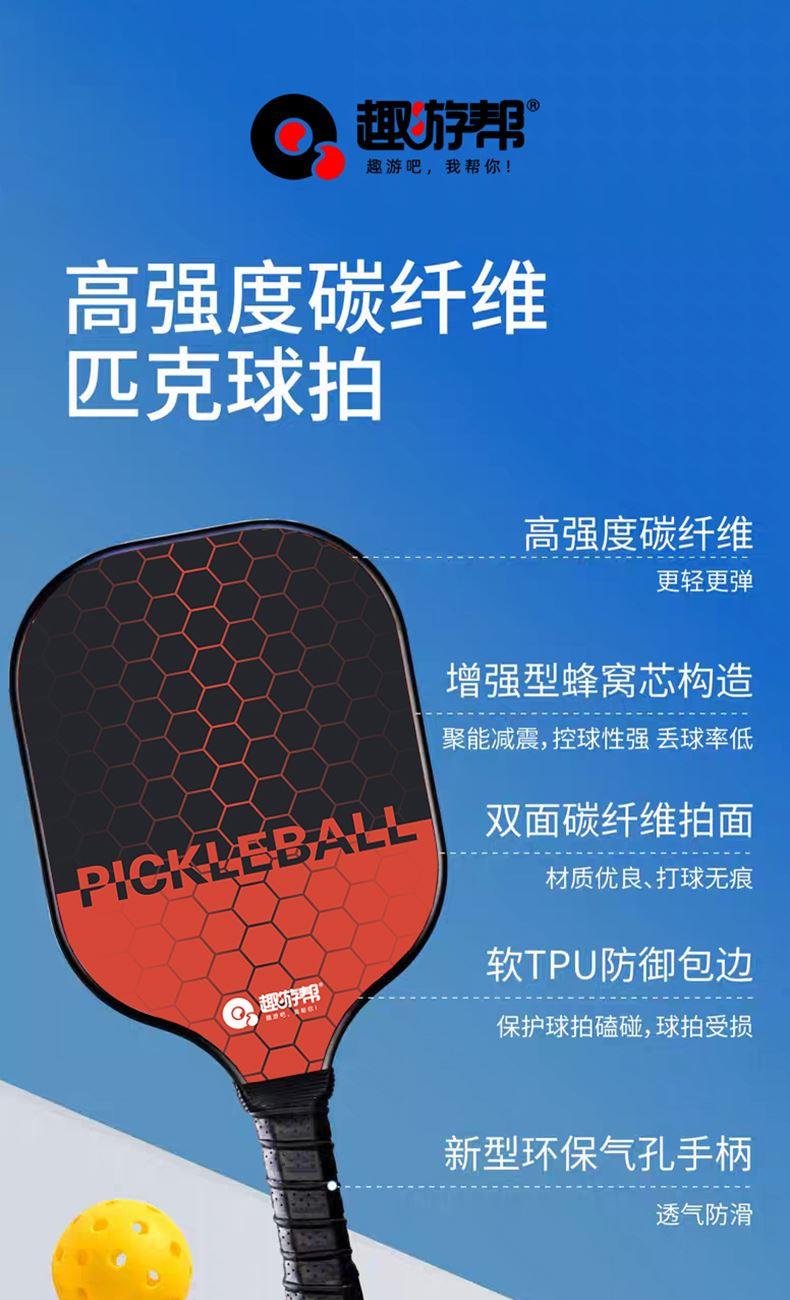 趣游帮2球1拍轻奢碳纤维匹克球套装(B016)