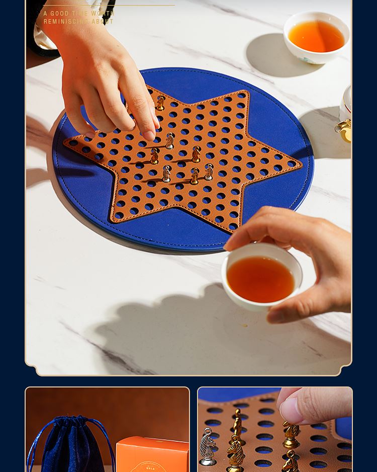 礼品配置清单: 双层主题礼盒、团圆皮革棋盘、马头棋子、五行钛杯*5、柠檬红茶*6、复古玻璃泡茶壶、新年红包*6、