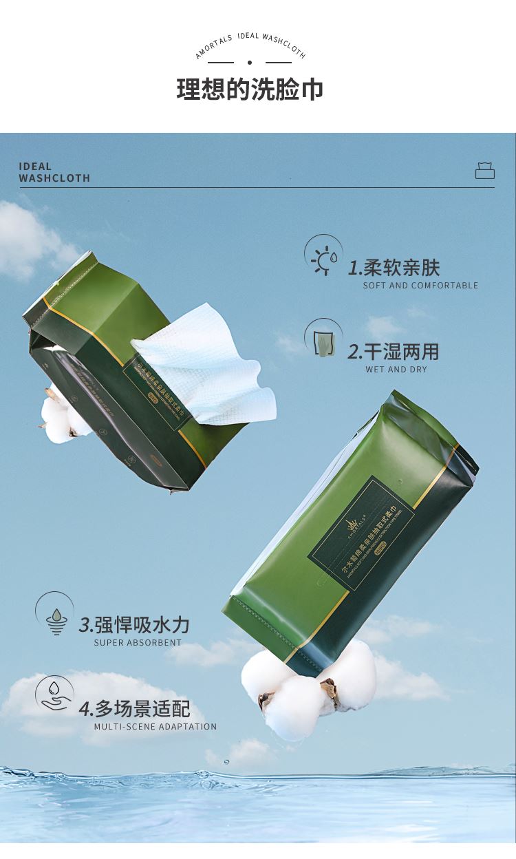 干湿两用:湿用可深层清洁,干用方便快捷,卸妆、洁面一巾搞定