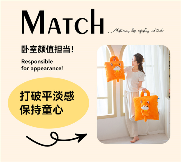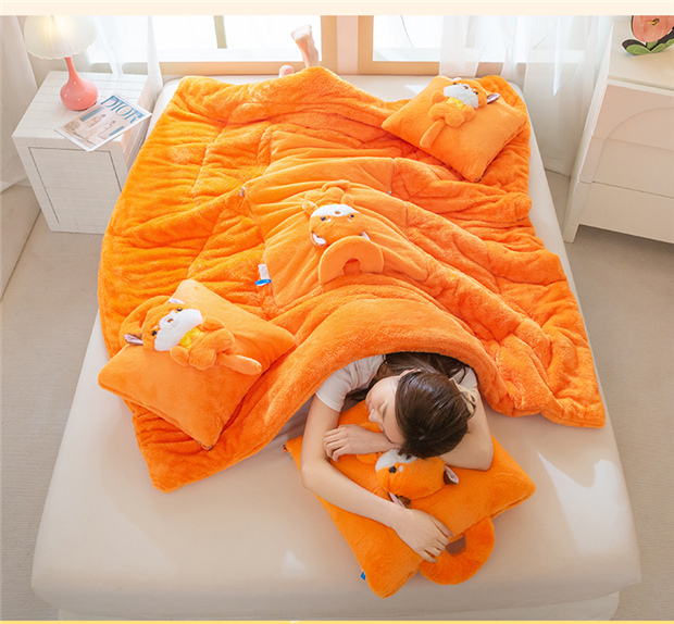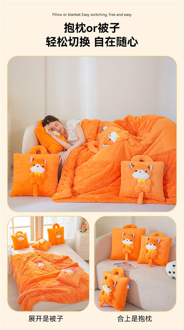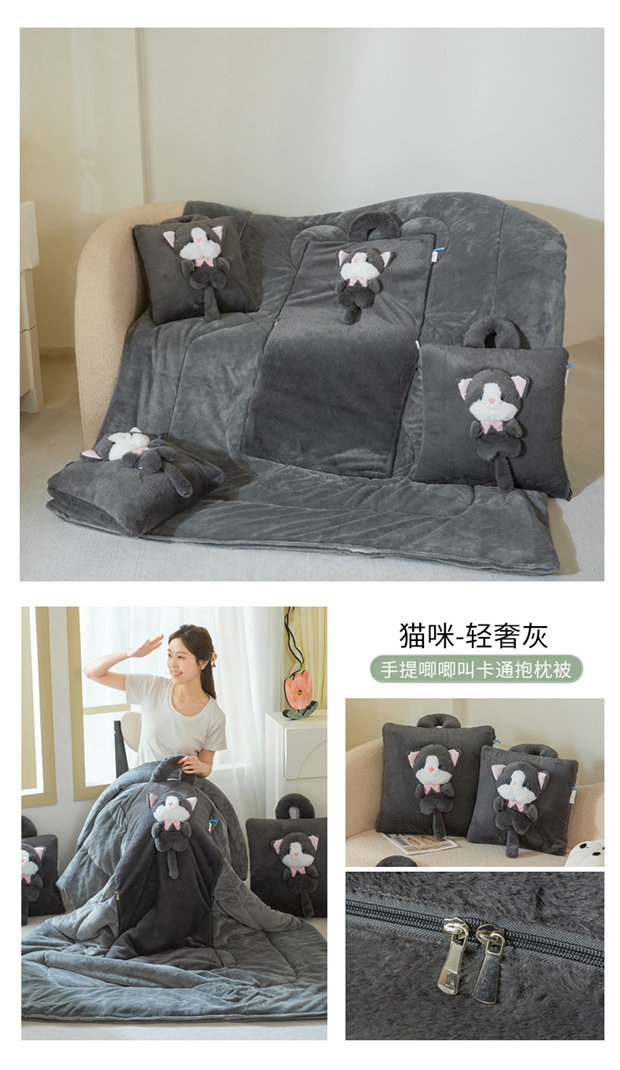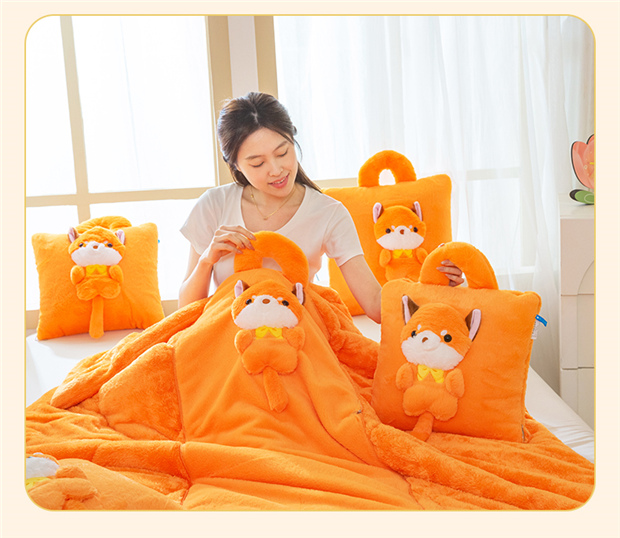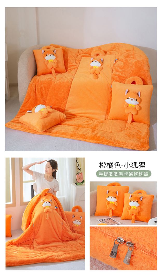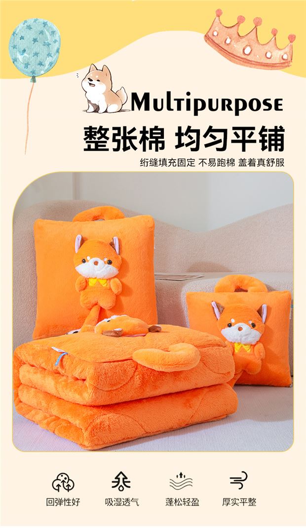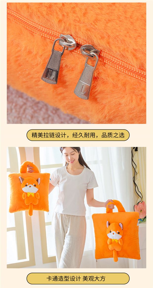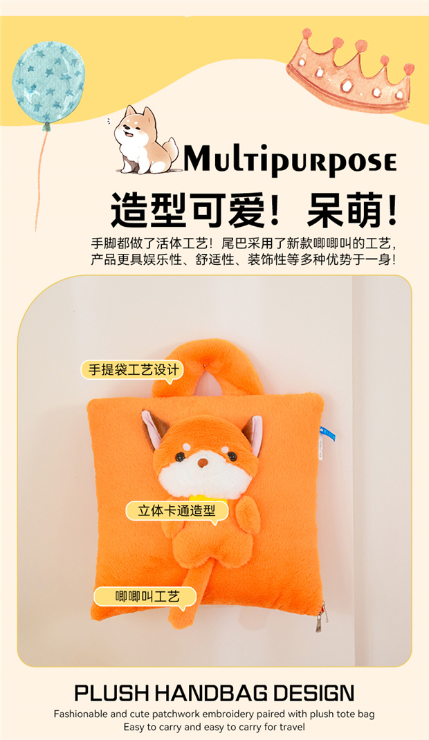 面料:兔毛绒 填充:整张羽丝棉 工艺:重工贴布绣+活体玩偶工艺 尺寸:40*40cm 打开100*150cm
