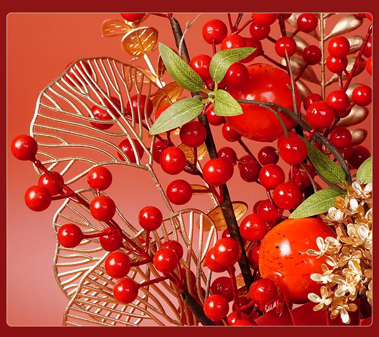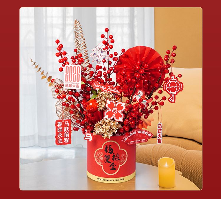 马年春节年宵花摆件石榴发财果成品客厅装饰福桶W4766