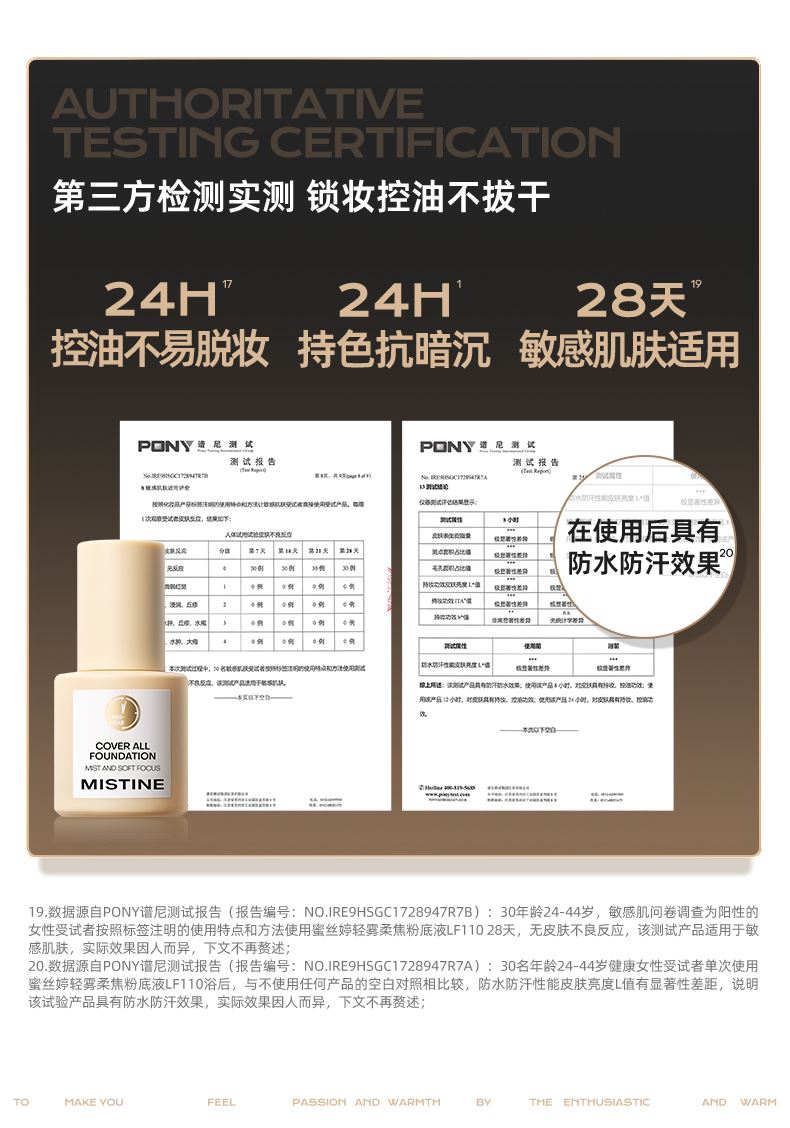 蜜丝婷轻雾柔焦金盾粉底液适合油皮LF100透亮瓷白色