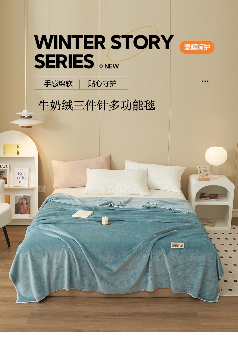 蕊丝坊家纺牛奶绒三件针多功能毯200*230cm