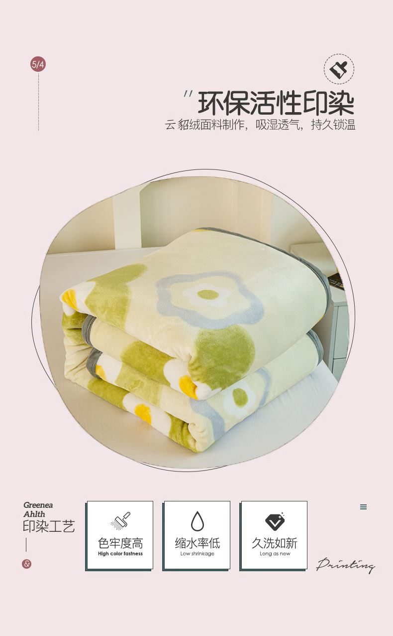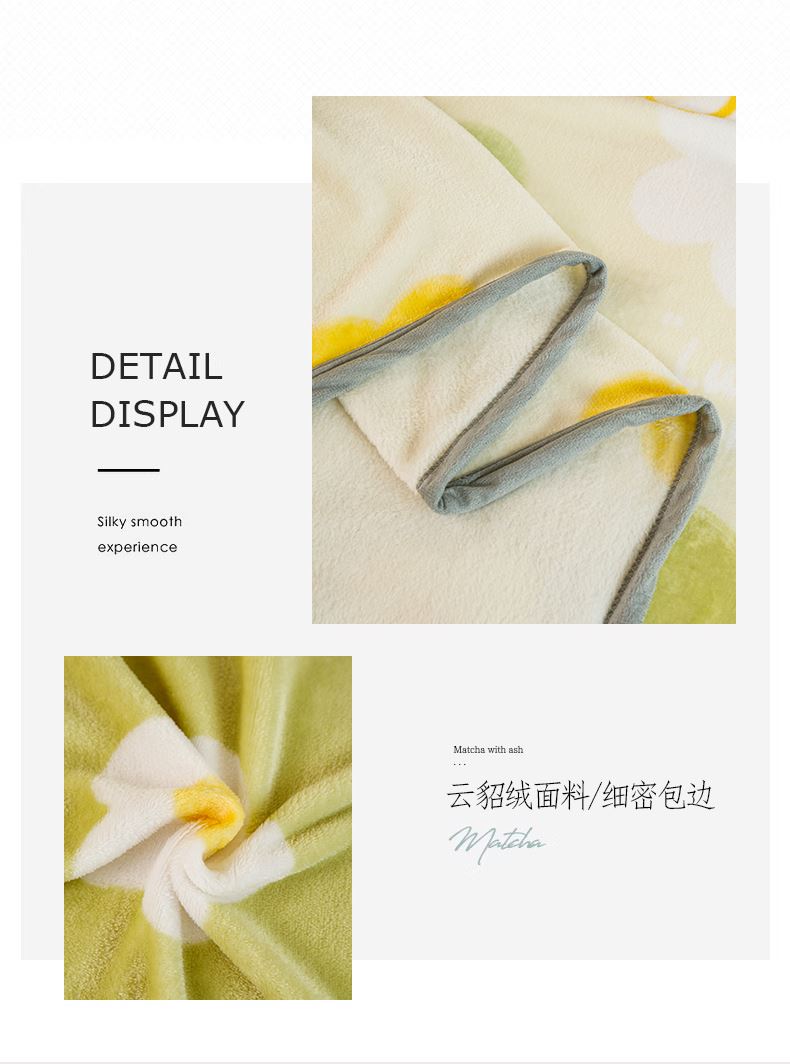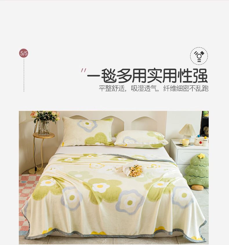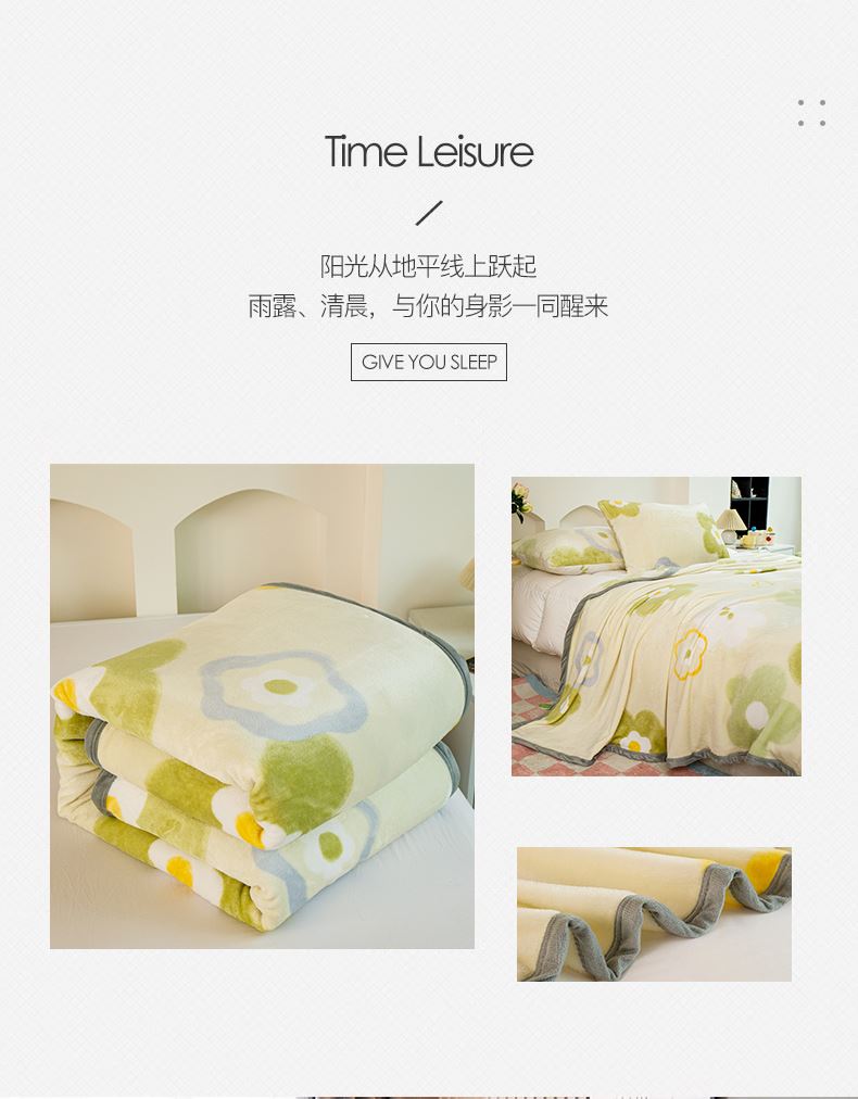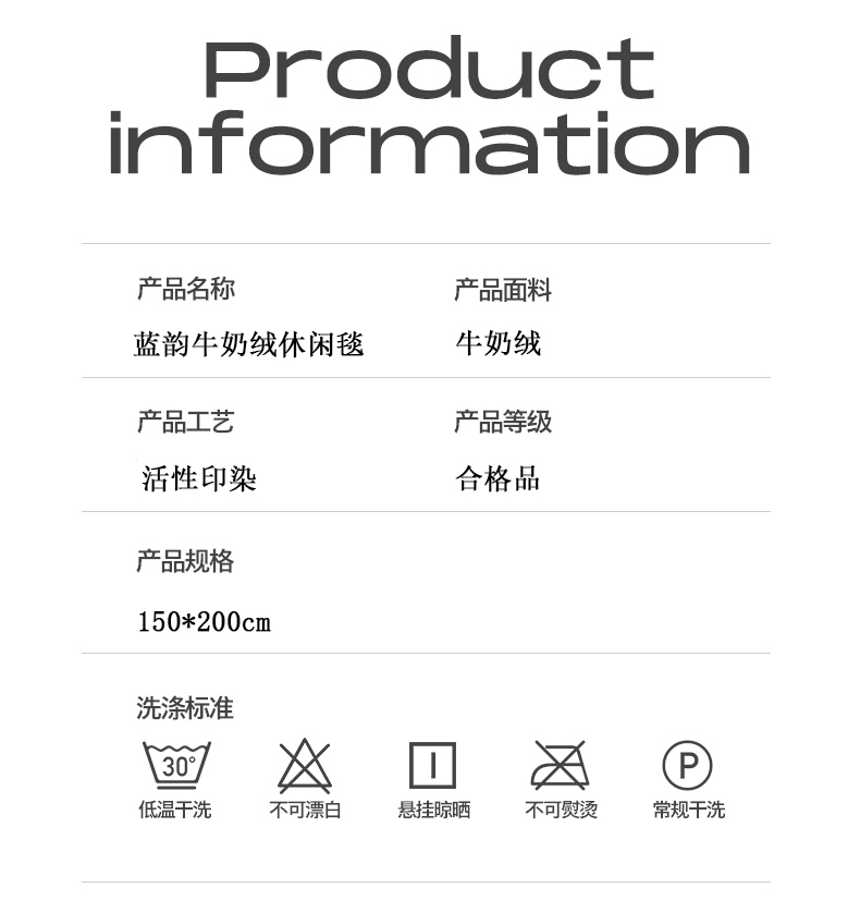 [ 规格 ]:150*200cm [ 面料 ]:牛奶绒 [ 克重 ]:650g 特点:牛奶绒面料,充分吸收汗气蒸发产生的热量,舒适透气,精美大方,绒感细腻,呵护您娇嫩肌肤新型植绒技术,绒毛结构丰盈紧实,不易掉毛告别掉毛烦恼。