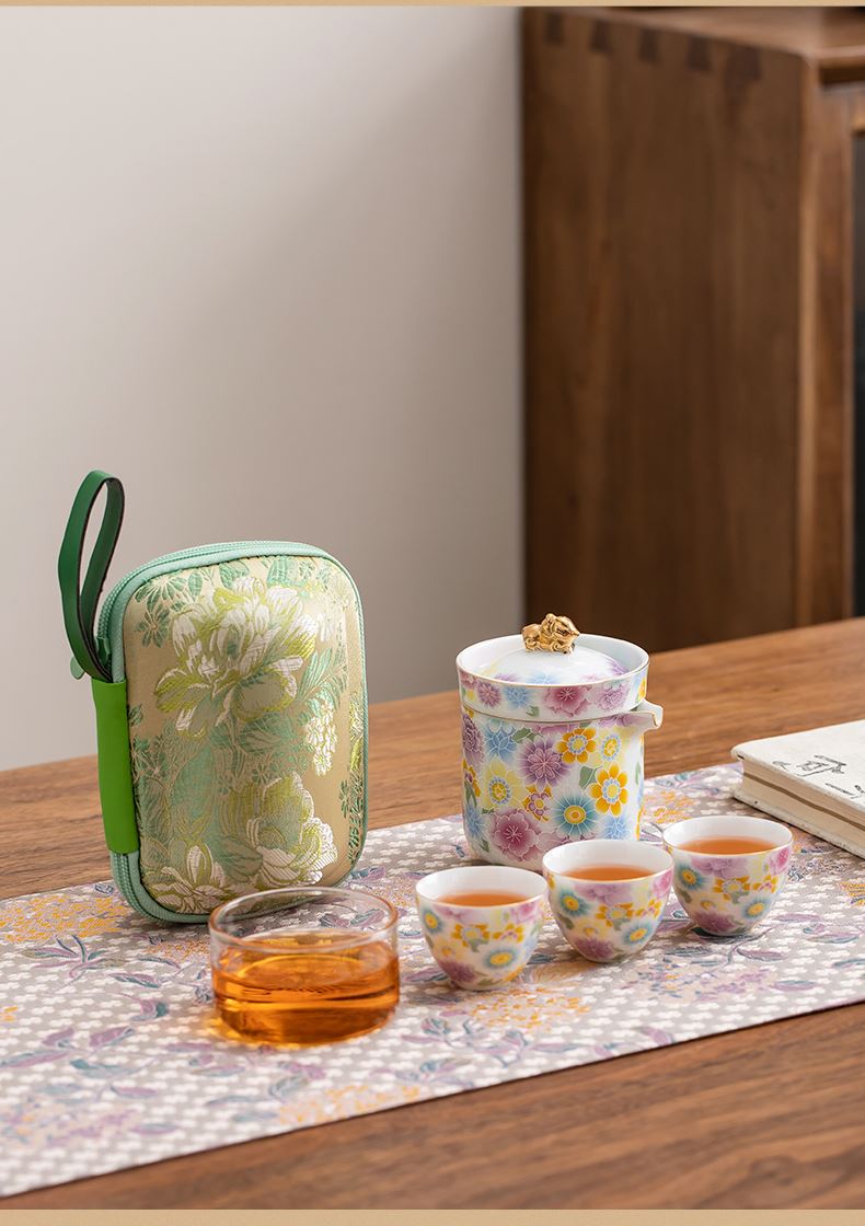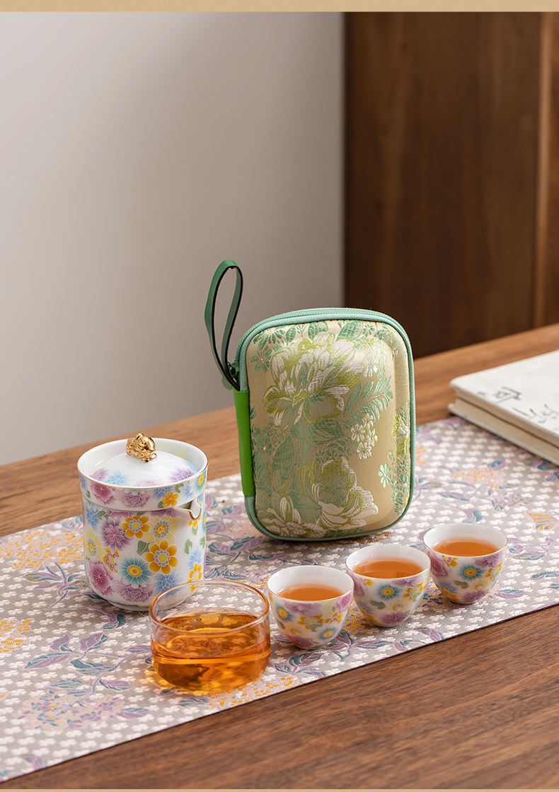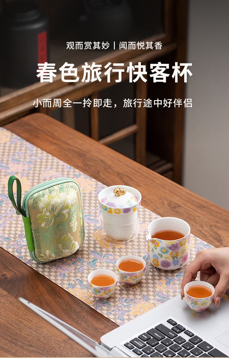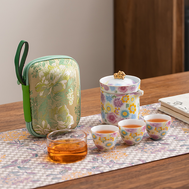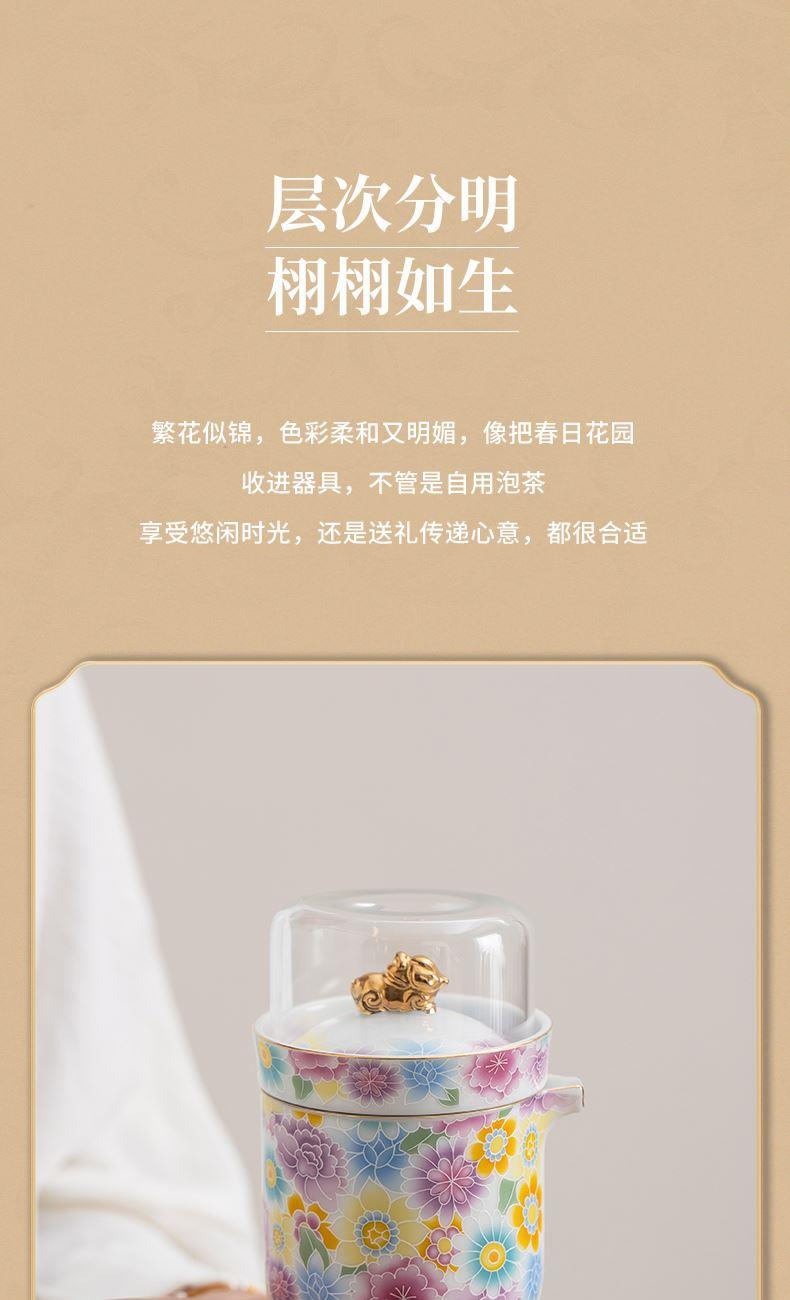 尾桥下窑珐琅彩万花春色旅行茶具套装开业促销节日伴手礼会议礼