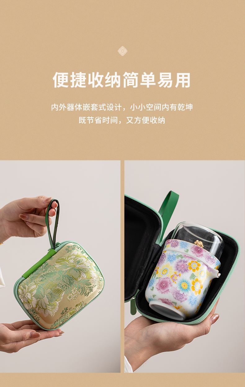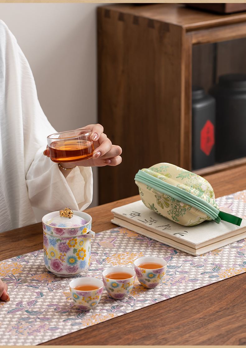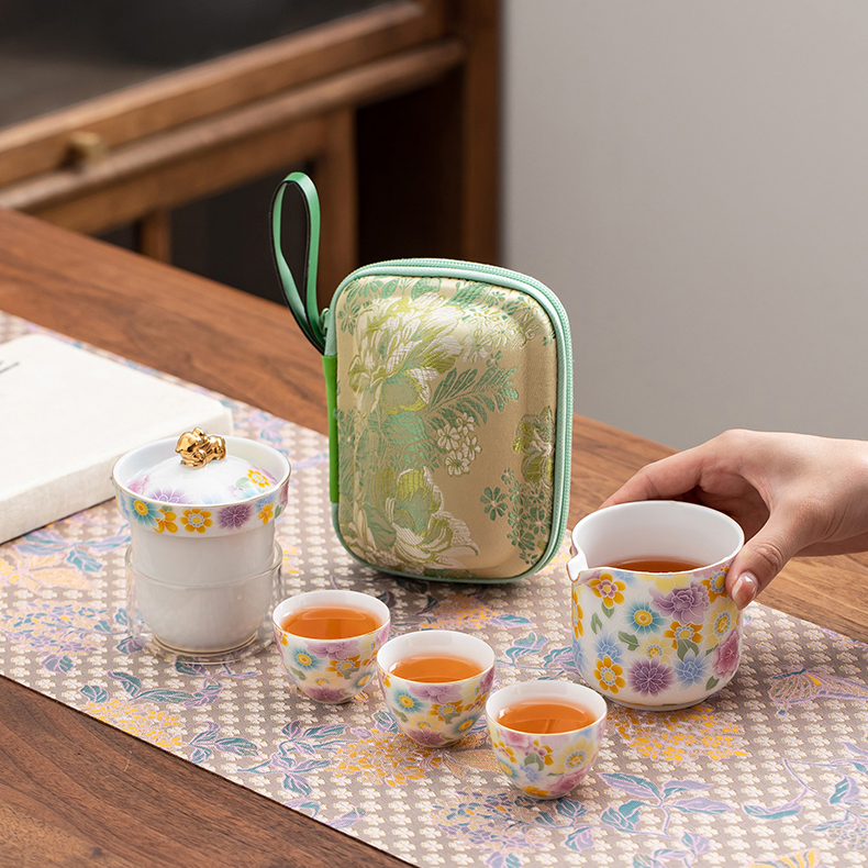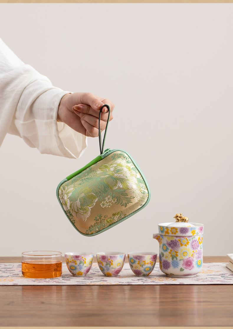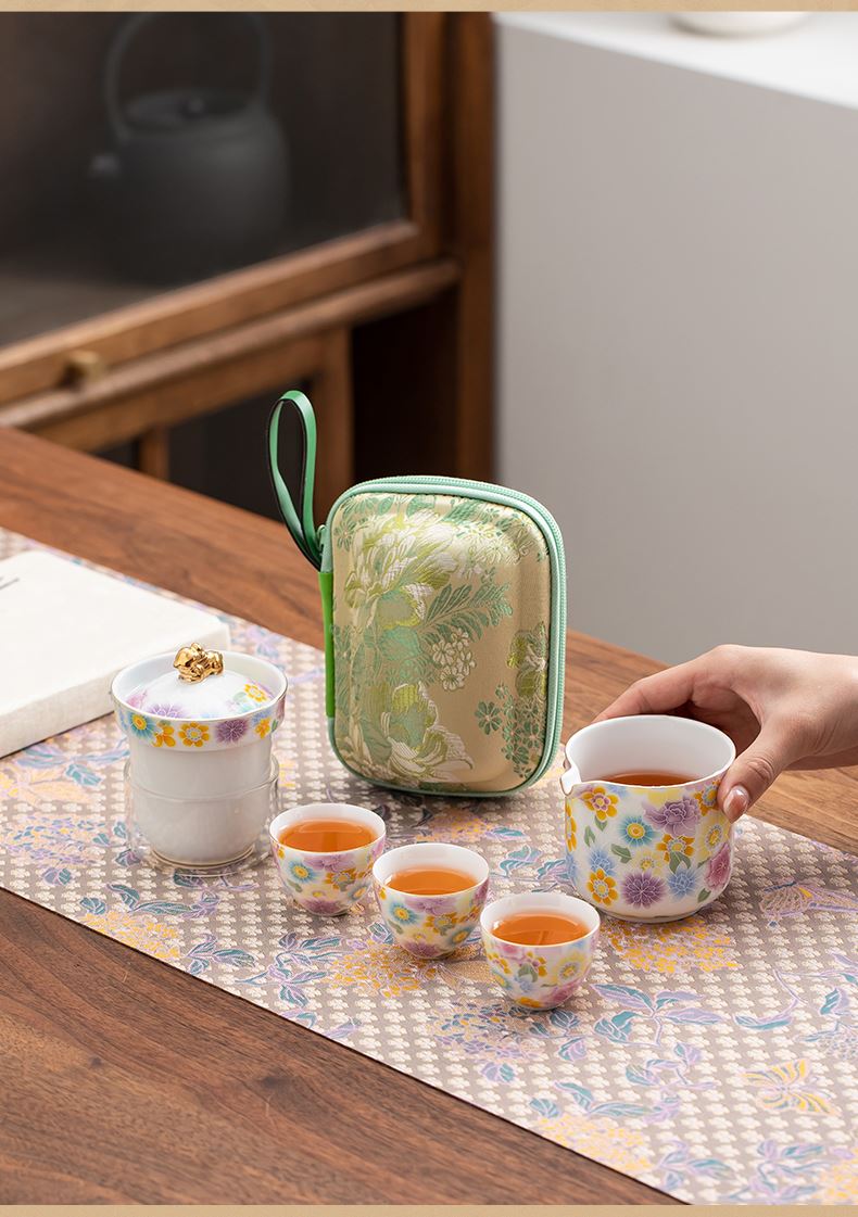 尾桥下窑珐琅彩万花春色旅行茶具套装开业促销节日伴手礼会议礼