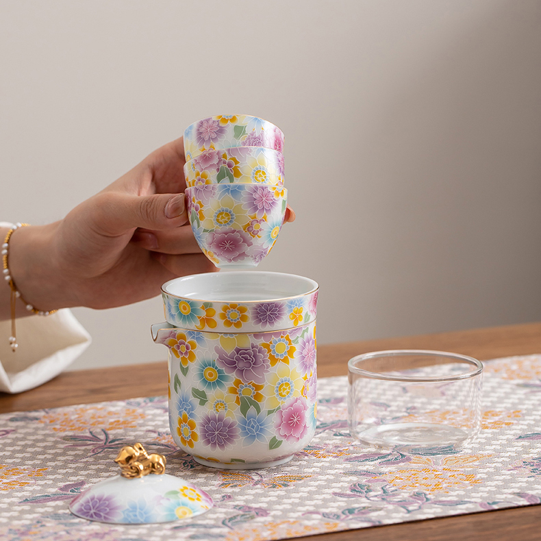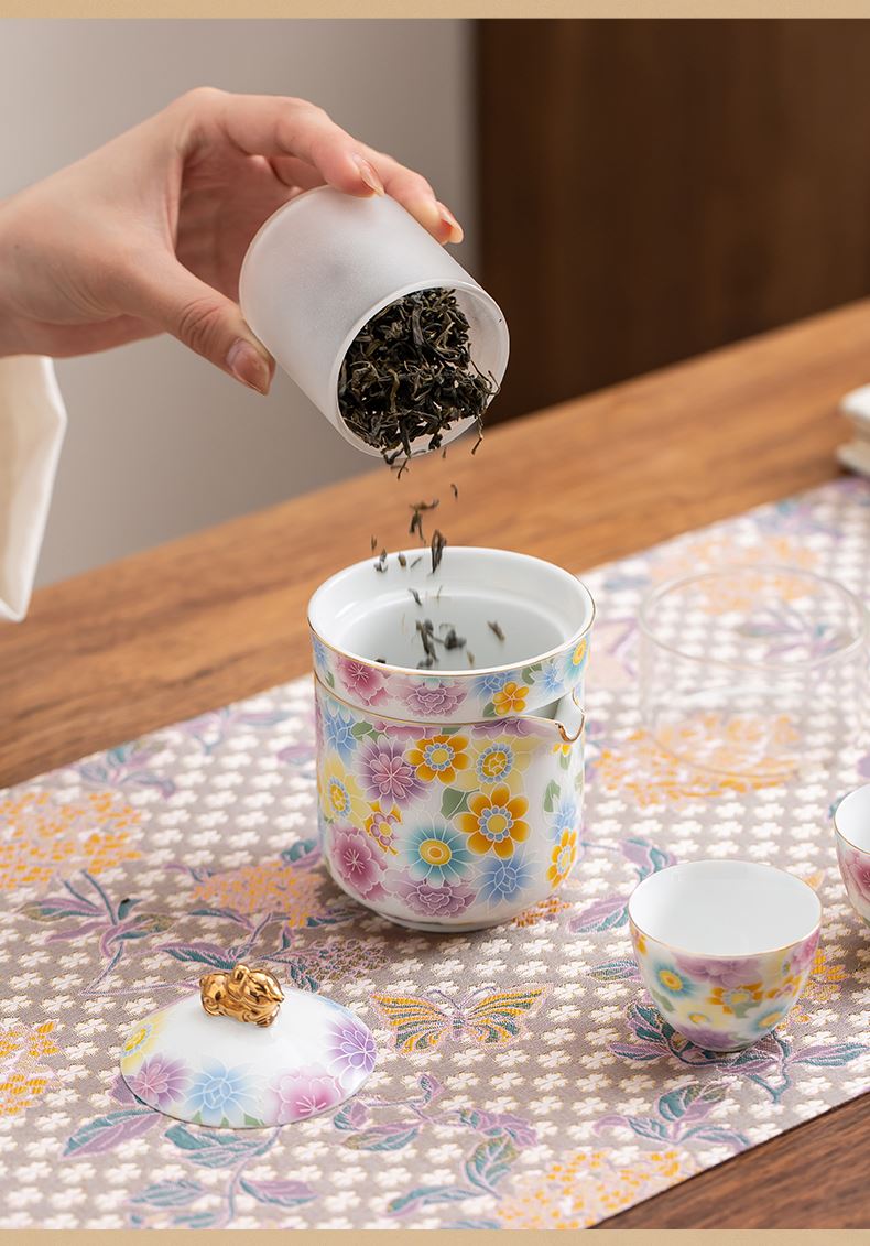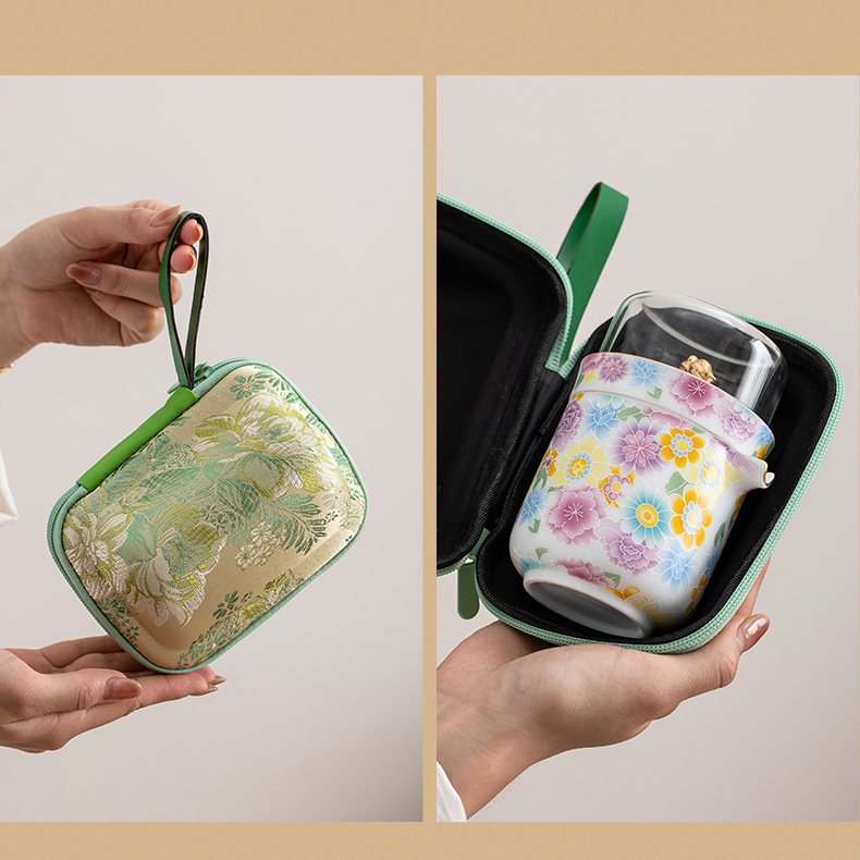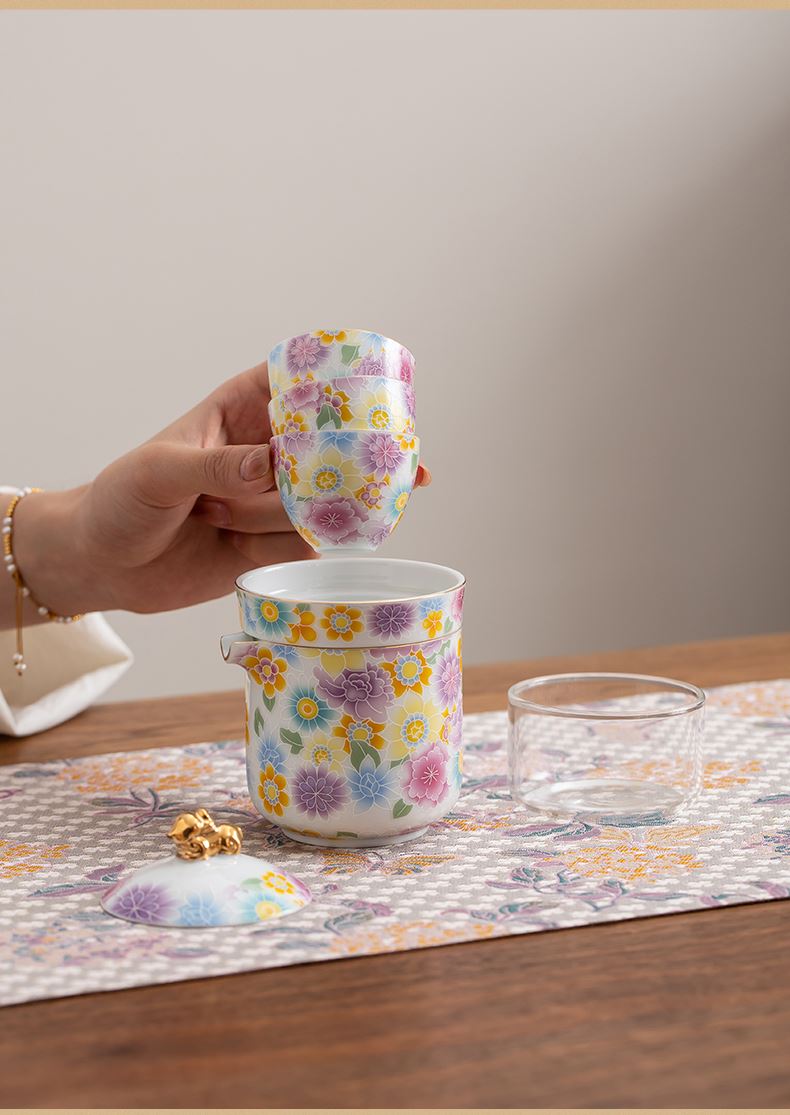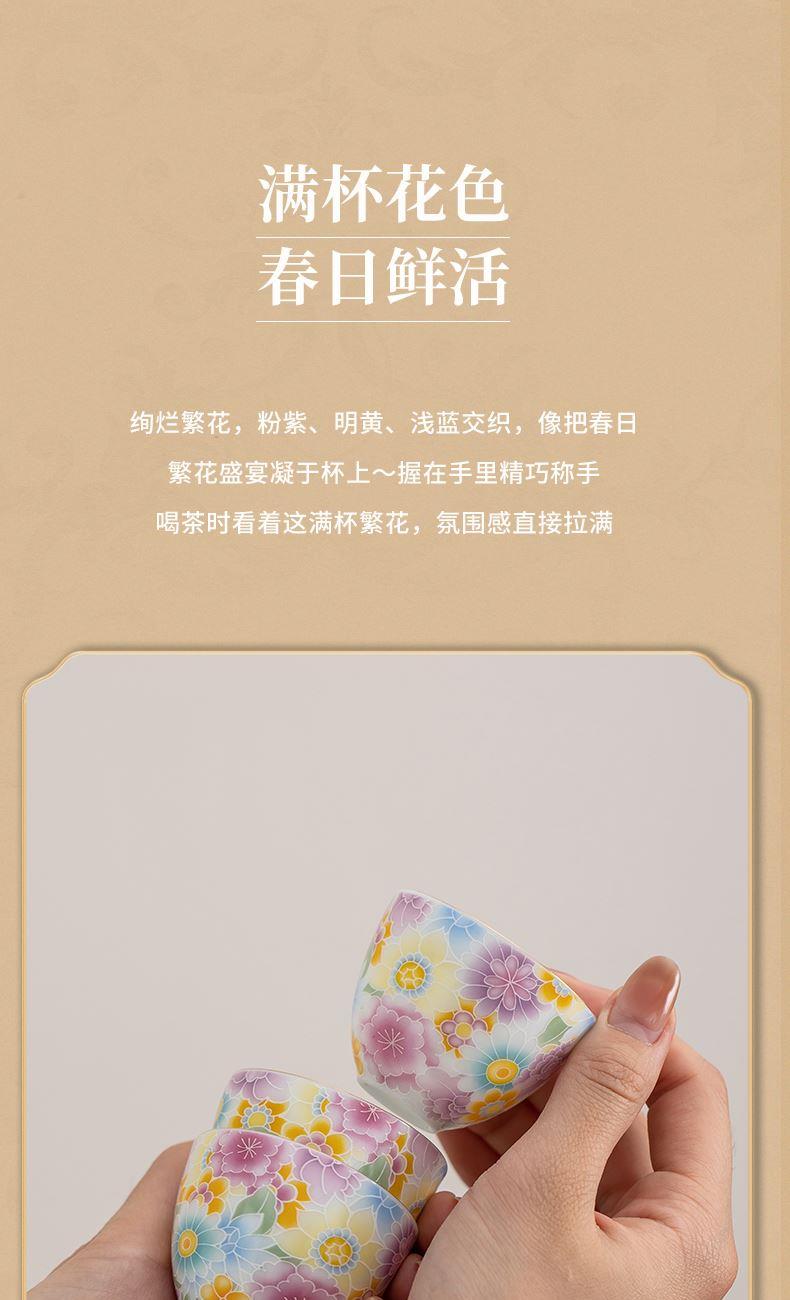 尾桥下窑珐琅彩万花春色旅行茶具套装开业促销节日伴手礼会议礼