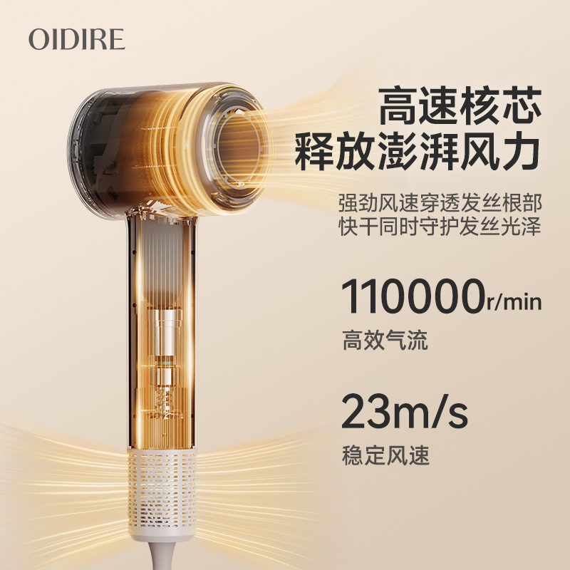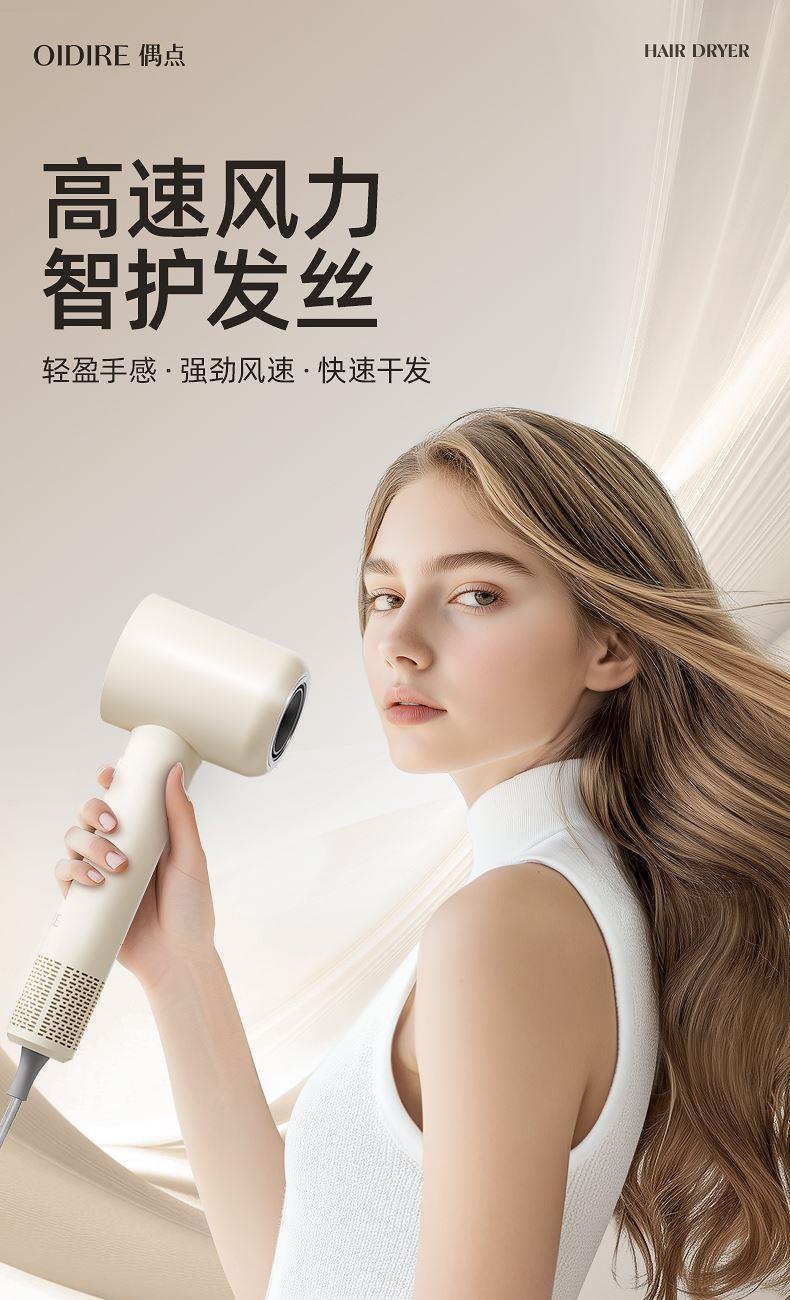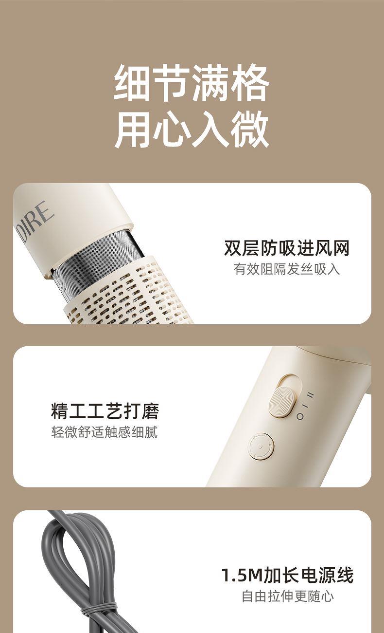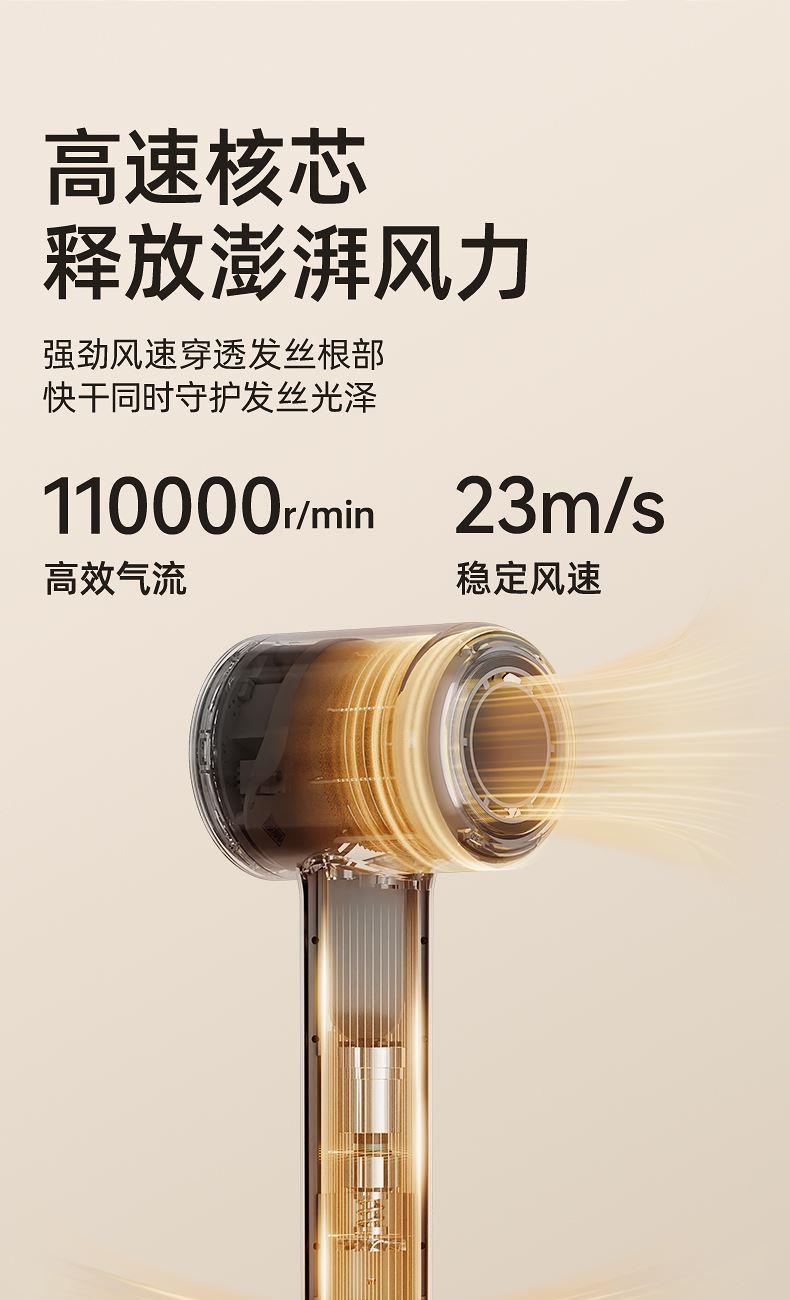 主要材质:ABS+PC 电压:220V 功率:1600W 1、恒温负离子护发,呵护头发安全 2、风嘴磁吸可拆卸设计 3、直流无刷电机,高转速可达110000转 4、双档位风速选择 5、四档功能选择,温风56℃,热风80℃