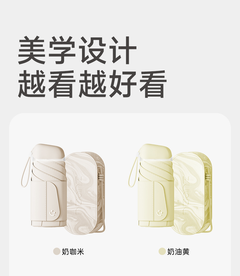 商品货号:ZD208 伞架材质:铝合金,不锈钢,玻纤 伞面材质:210T覆膜全遮光黑胶 款式:手动六折 商品参数:直径:90cm 高度:54cm 收拢宽度径:6.5cm 收拢高度:15cm 商品毛重:0.25 商品颜色: ZD208-降樱粉 ZD208-沁心蓝 ZD208-锦帆黄 ZD208-杜鹃米 ZD208-迷蝶绿 ZD208-奶茶灰